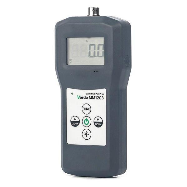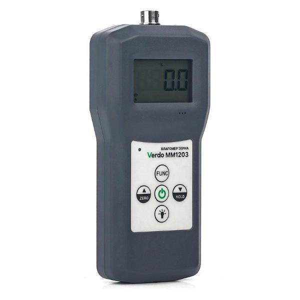 Влагомер зерновых культур VERDO MM1203 предназначен для измерения относительной влажности различных видов зерна (37 кодов) в процессе сбора, накопления, перевозки и хранения. В приборе реализован кондуктометрический метод измерения с автоматической температурной компенсацией. Также во влагомере предусмотрены функции калибровки (установки) нуля и корректировки показаний. Влагомер VERDO MM1203 имеет эргономичный корпус и оснащен большим ЖК-дисплеем с подсветкой для удобного считывания показаний, а также выносным щупом для удобства измерений. Питание влагомера осуществляется при помощи четырех батарей типа ААА.