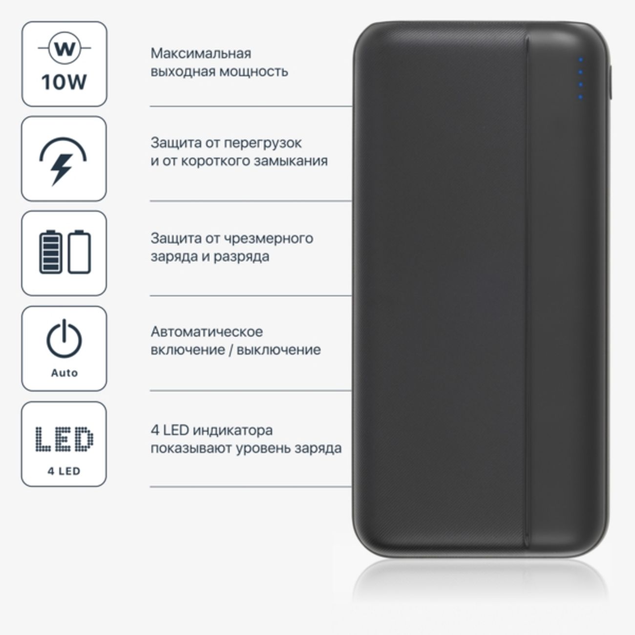 Так как много езжу по работе, пришлось купить себе портативную зарядку. У него 10000 ампер и этого хватает, чтобы зарядить телефон несколько раз. Брал его с собой уже несколько раз и он никогда не подводил. Корпус сделан из приятного на ощупь материала, что приятно держать в руках. К тому же, он довольно компактный, легко залазит в рюкзак. Понравилось, что есть возможность заряжать сразу два устройства.