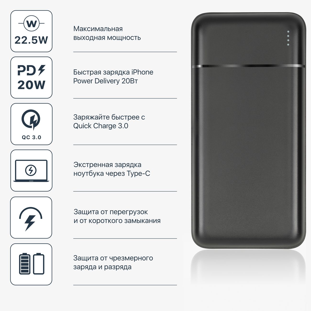 Вы можете купить Внешний аккумулятор RIVACASE VA2402 20000 mAh PD 22.5W черный в магазинах М.Видео по доступной цене. Внешний аккумулятор RIVACASE VA2402 20000 mAh PD 22.5W черный: подробное описание, фото и отзывы реальных покупателей, характеристики, возможность скачать инструкции и подобрать аксессуары.