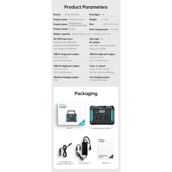Внешний аккумулятор Romoss RS500 мощностью 108000 мА*ч поддерживает зарядку устройств с помощью специальных портов. Модель является универсальной, поэтому подходит для смартфонов, электронных книг, смарт-часов. Для комфортной эксплуатации корпус оснащен встроенным фонариком. Световая индикация помогает контролировать уровень зарядки. Корпус изготовлен из высокопрочного пластика, который не подвержен сколам, царапинам и другим механическим повреждениям. За счет компактного размера аккумулятор удобен в хранении.
