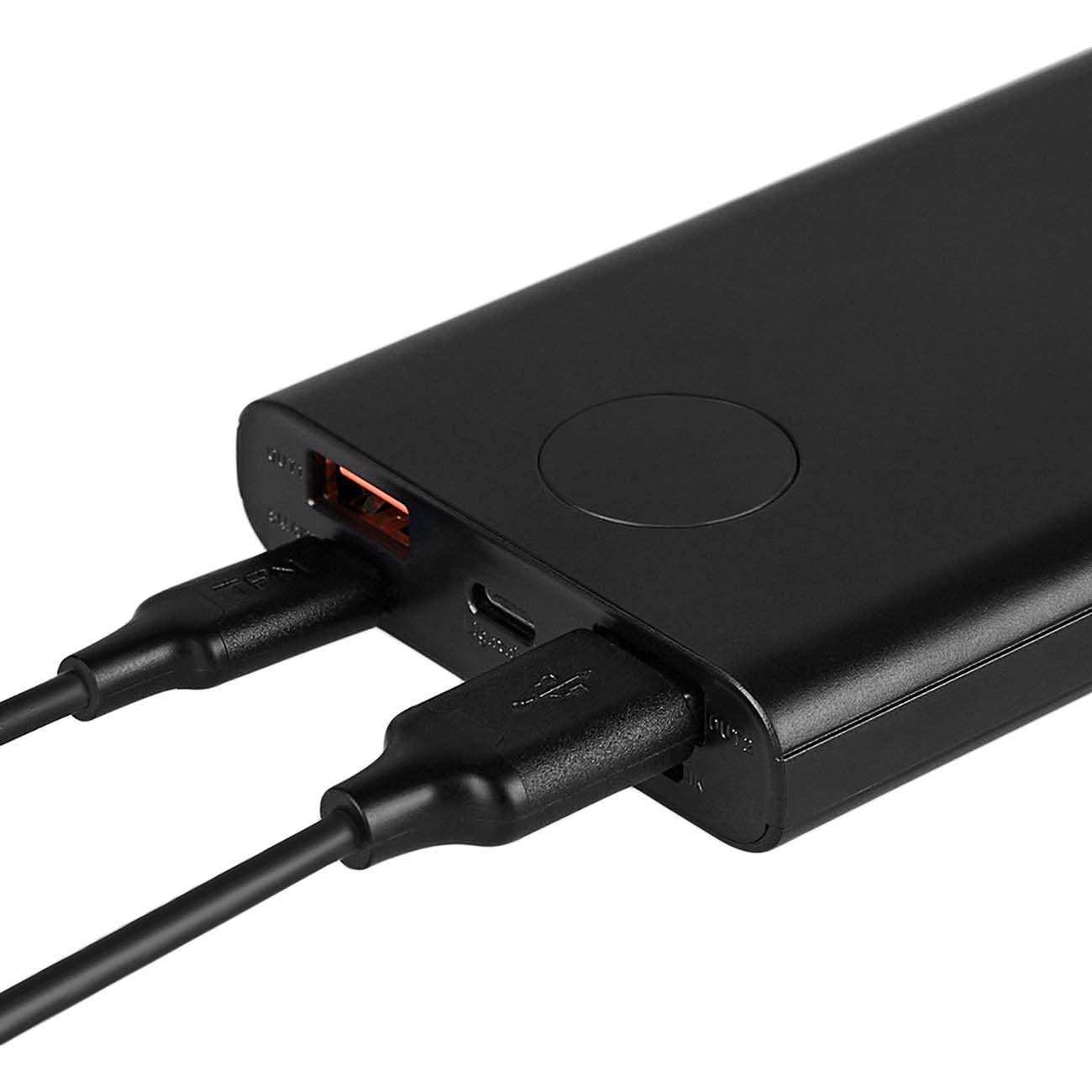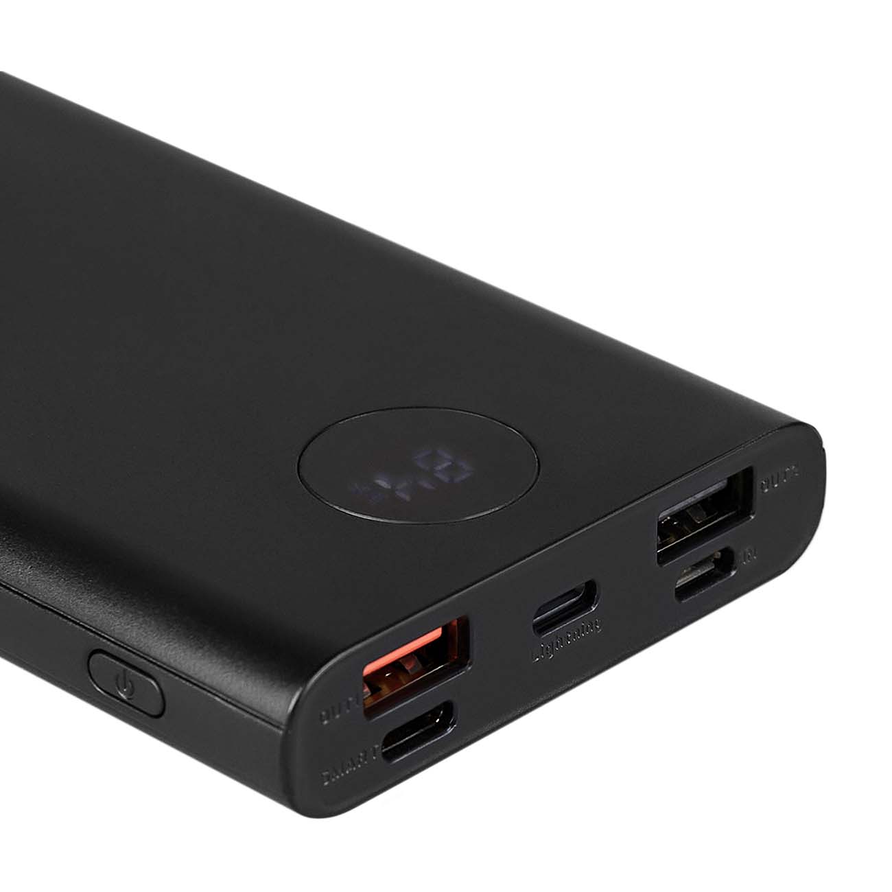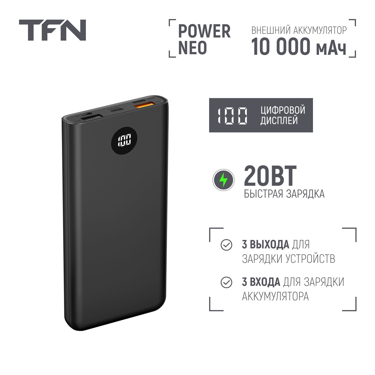 Внешний аккумулятор TFN Power Neo оборудован дисплеем, на котором отображается количество оставшейся энергии. Объем литий-полимерной батареи — 10000 мАч. На восстановление ресурса в приборе понадобится 3 часа. Для синхронизации с девайсами и сетевым адаптером сделаны порты USB типов С, А и micro, в комплекте есть кабель длиной 20 см. Габариты модели — 14,6 х 6,8 х 1,6 см, вес — 235 г.