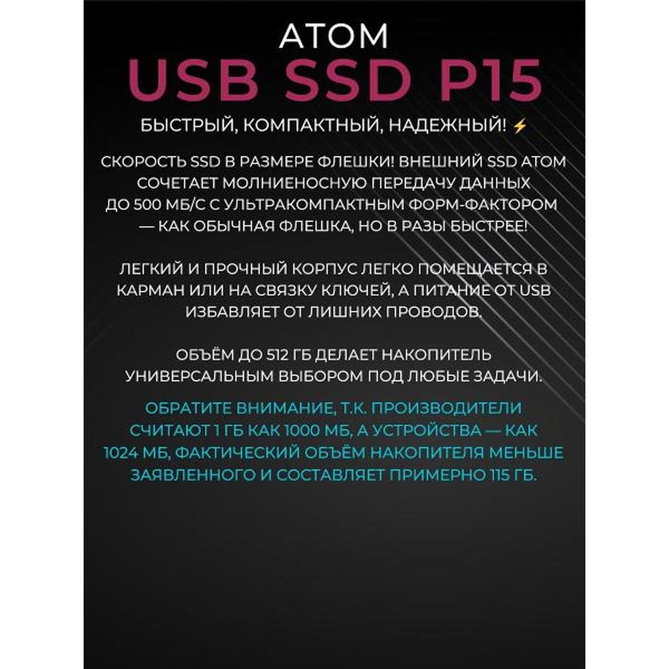 Вы можете купить Внешний диск SSD Atom 128GB USB3.2 AEXSSDP15128GBK в магазинах М.Видео по доступной цене. Внешний диск SSD Atom 128GB USB3.2 AEXSSDP15128GBK: подробное описание, фото и отзывы реальных покупателей, характеристики, возможность скачать инструкции и подобрать аксессуары.