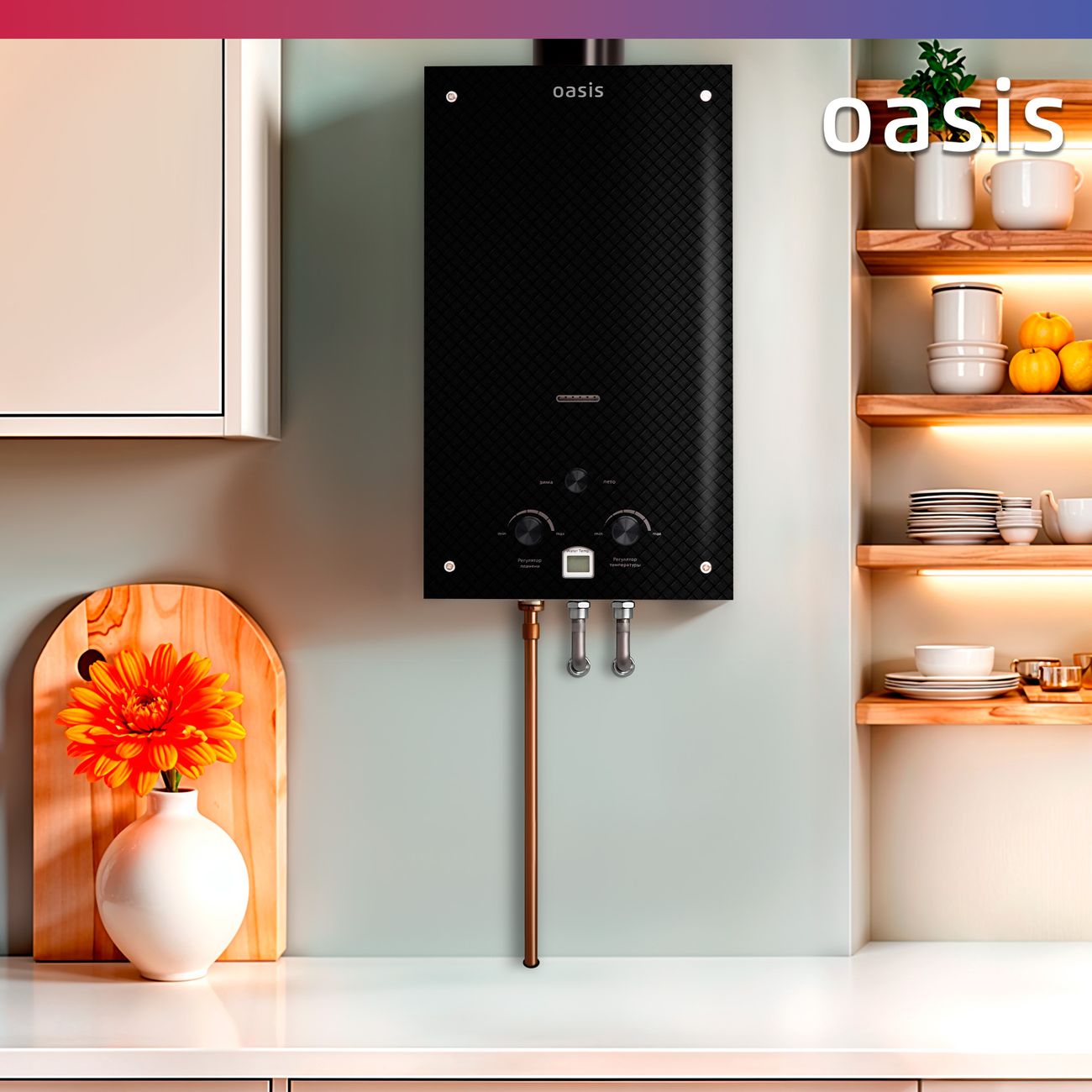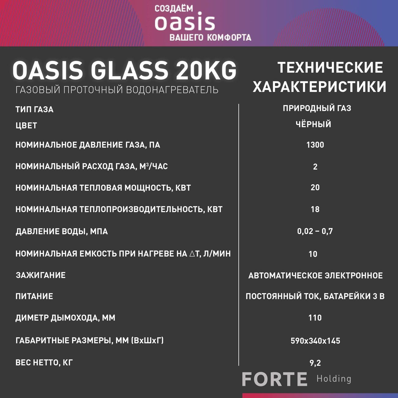 Газовый проточный водонагреватель Oasis Glass 20 KG — решение для организации ГВС в домах без централизованного горячего водоснабжения. Мощность 20 кВт обеспечивает подачу до 10 л/мин нагретой воды, подходит для квартир и коттеджей с дымоходной системой.