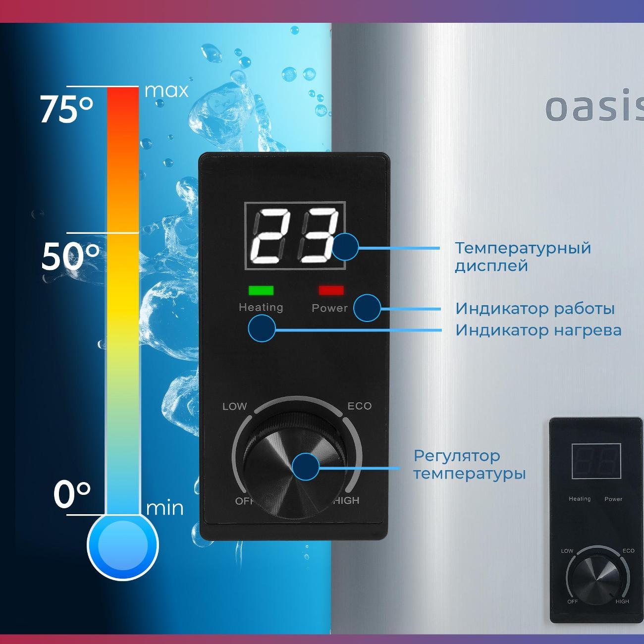 Электрический водонагреватель Oasis 100A создан для нагрева воды в бытовых целях. Он способен обеспечить горячее водоснабжение в случае, если централизованная подача воды отсутствует или временно прекращена. Объём бака составляет 100 литров.