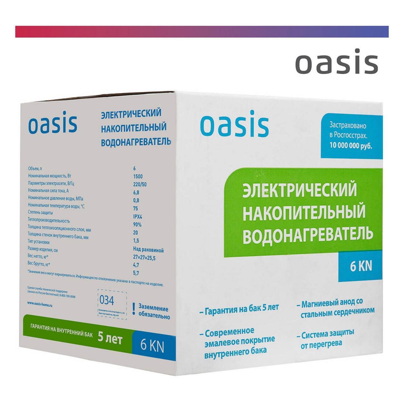Вы можете купить Водонагреватель накопительный Oasis 6 KN в магазинах М.Видео по доступной цене. Водонагреватель накопительный Oasis 6 KN: подробное описание, фото и отзывы реальных покупателей, характеристики, возможность скачать инструкции и подобрать аксессуары.