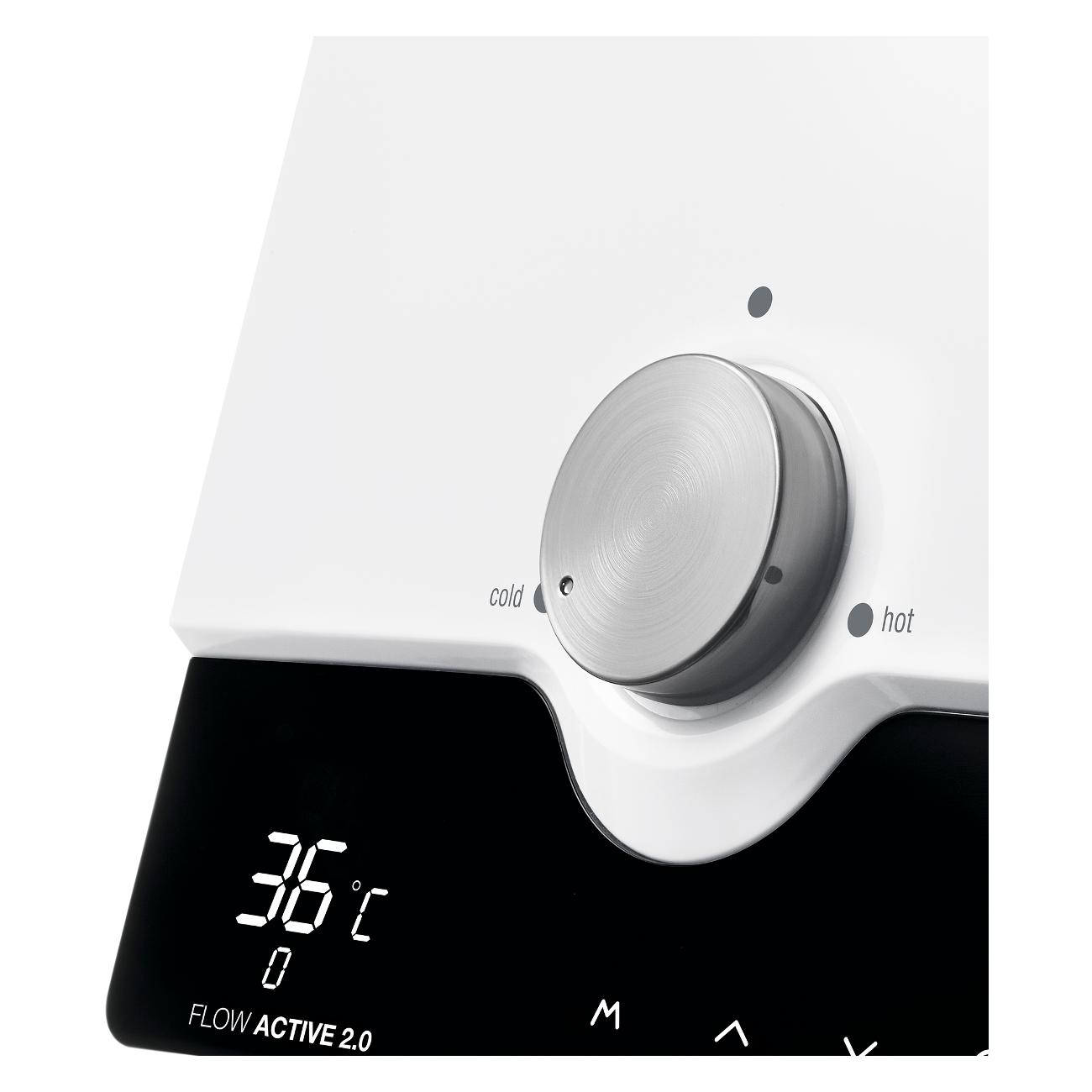 Проточный водонагреватель Electrolux NPX 8 Flow Active 2.0 оснащен цифровым экраном, на котором отображается заданная температура воды. Для управления используются кнопки сенсорного типа, расположенные на фронтальной части корпуса. Производительность достигает 4,2 л/мин. Применена защита от перегрева. Доступна функция самодиагностики неисправностей. Максимальная температура равна 60°C. Нагреватель автоматически отключается в момент прекращения подачи воды. Технология Multi Memory запоминает последние установленные настройки и применяет их при следующем включении устройства.