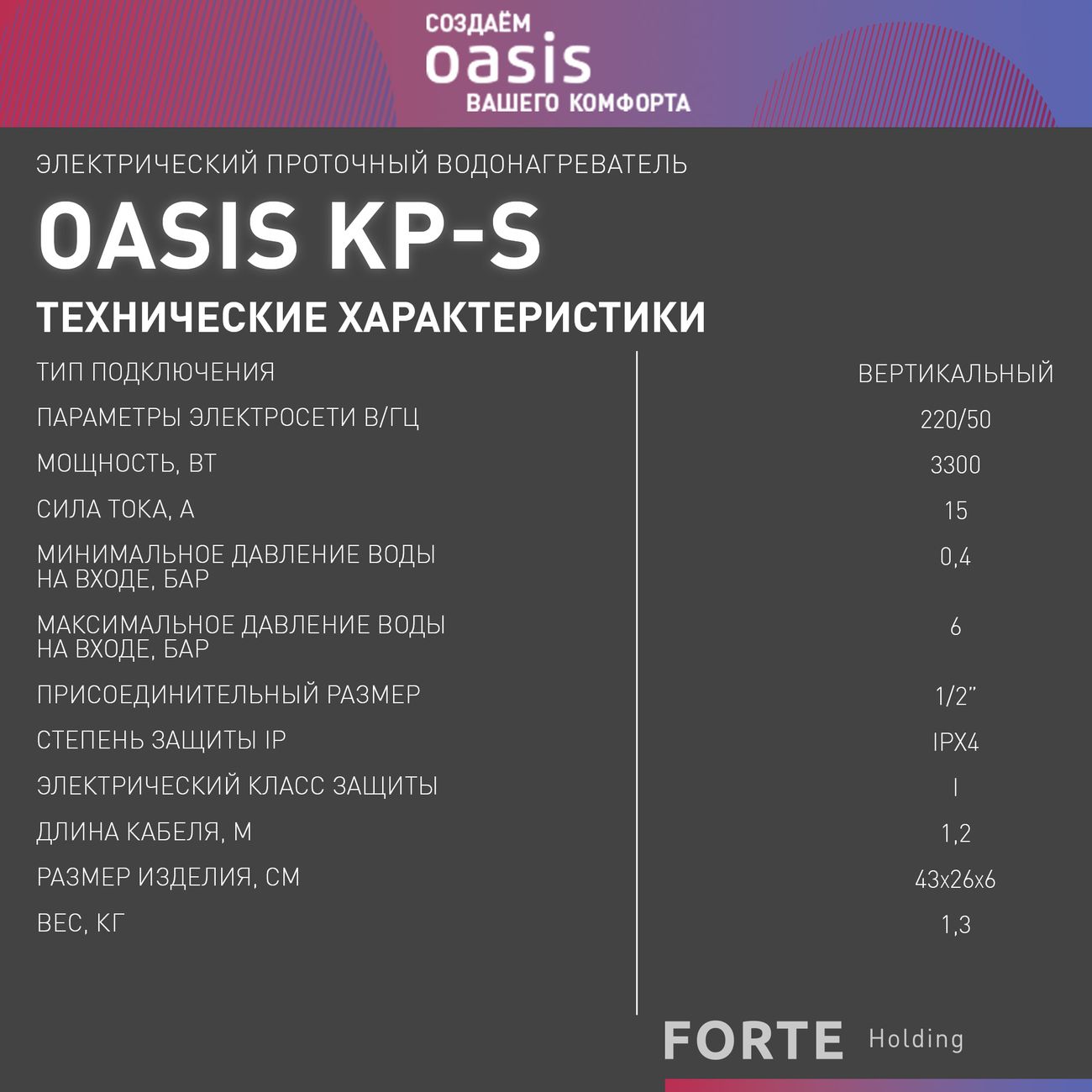 Вы можете купить Водонагреватель проточный Oasis KP-S в магазинах М.Видео по доступной цене. Водонагреватель проточный Oasis KP-S: подробное описание, фото и отзывы реальных покупателей, характеристики, возможность скачать инструкции и подобрать аксессуары.