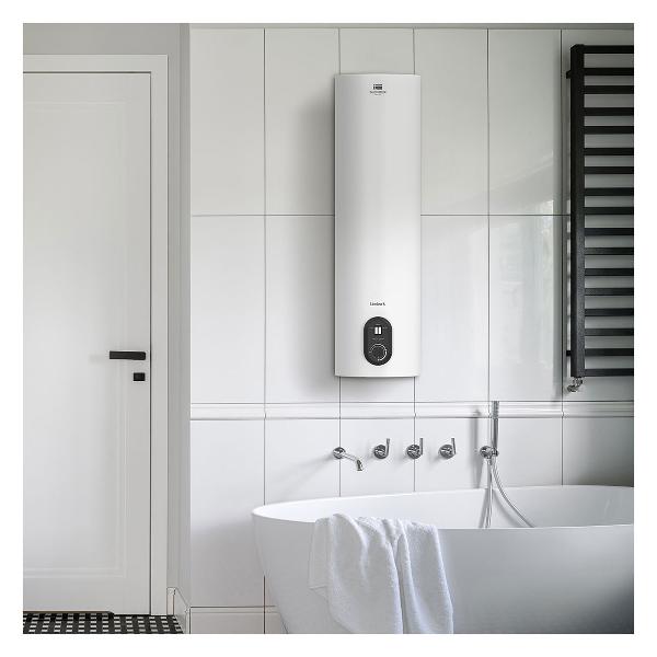 Водонагреватель Timberk SWH RS7 40 V устанавливается в вертикальном положении. Это модель накопительного типа с баком 40 л, сделанным из нержавеющей стали. Механическая система управления позволяет регулировать температуру и поддерживать ее на заданном уровне, максимальное значение — 80°C.