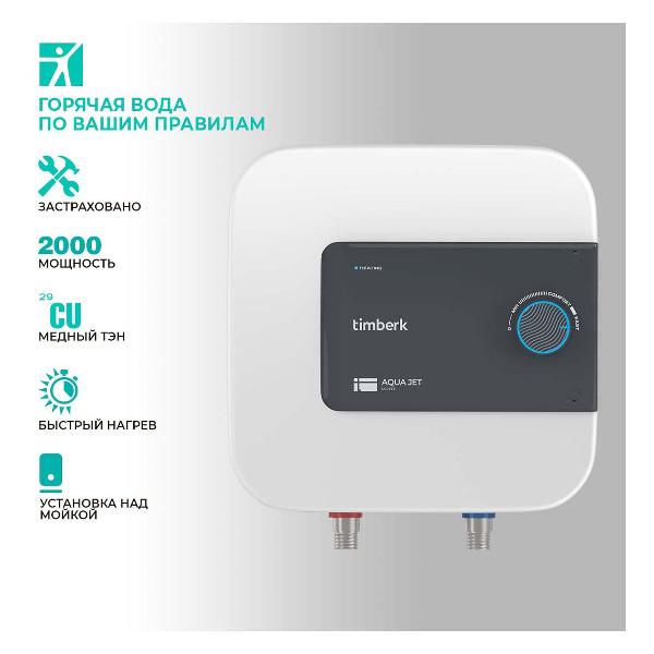 Водонагреватель Timberk SWH SE1 10 VO накопительного типа обладает баком из нержавеющей стали, вмещающим до 10 л. Предельная температура составляет 75°C. Магниевый анод препятствует образованию накипи на стенках. В качестве нагревательного элемента используется сухой тэн. Световая индикация сигнализирует о включении, выбранном режиме, настройка которого осуществляется посредством поворотного регулятора. Максимальная мощность — 2 кВт. В комплект входит сетевой кабель длиной 1,5 м. Корпус изготовлен из пластика белого цвета. Размеры — 33,5х33,5х28,5 см. Вес — 7,5 кг.