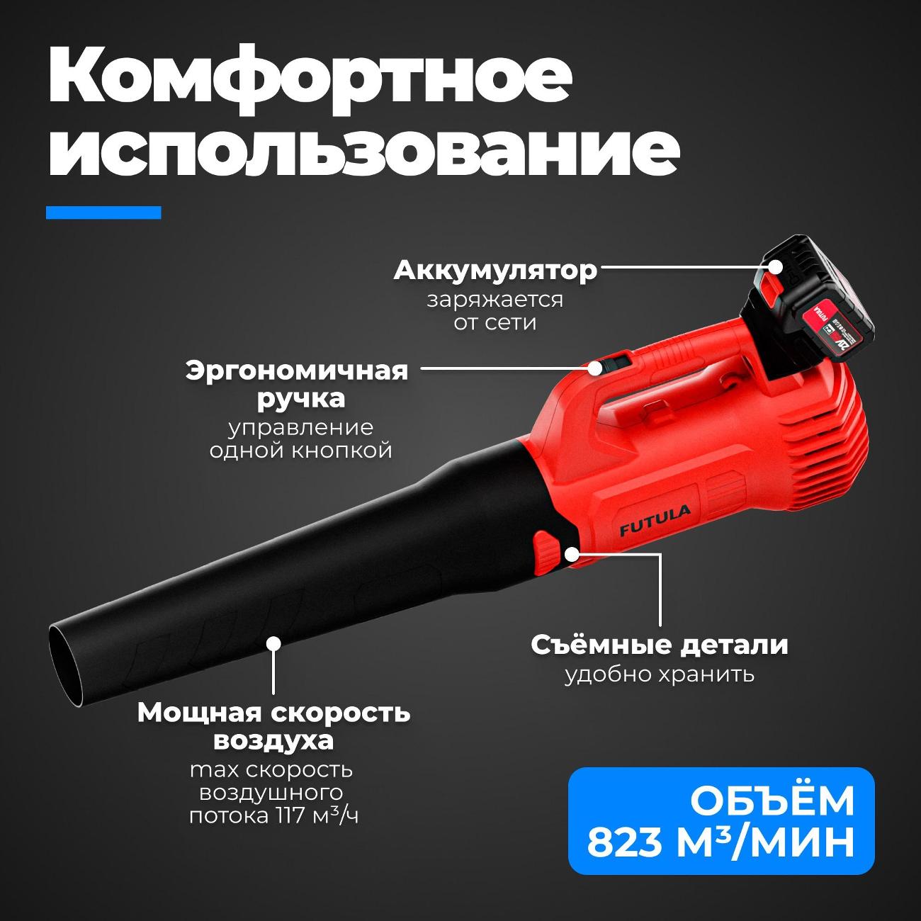 Вы можете купить Воздуходувка аккумуляторная FUTULA BL8 в магазинах М.Видео по доступной цене. Воздуходувка аккумуляторная FUTULA BL8: подробное описание, фото и отзывы реальных покупателей, характеристики, возможность скачать инструкции и подобрать аксессуары.