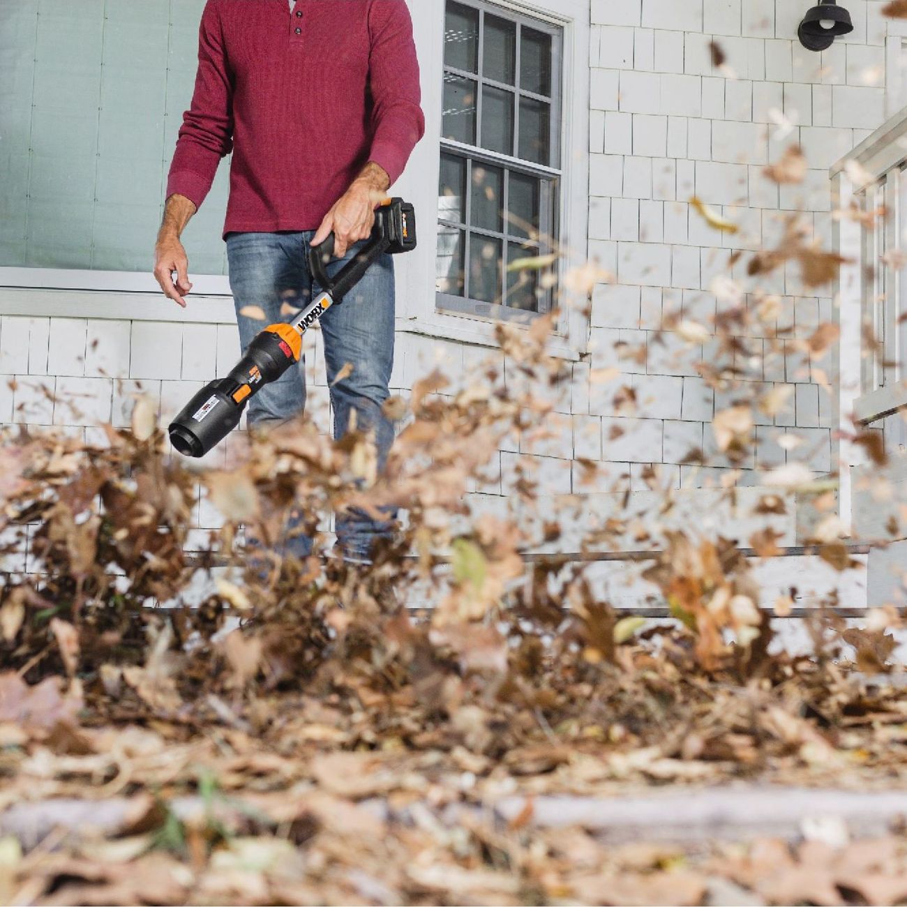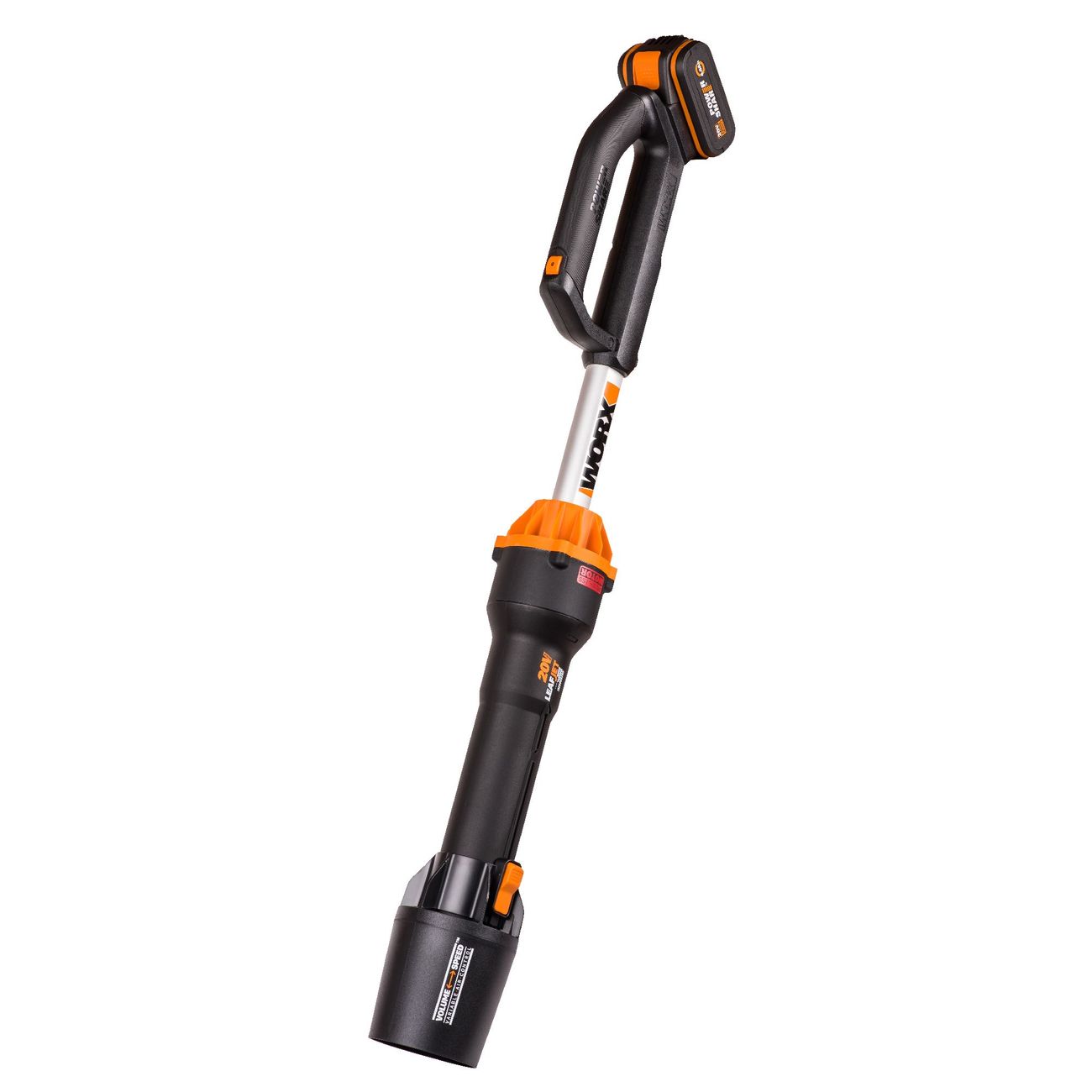 Воздуходувка Worx WG543E оснащена бесщеточным двигателем. Она работает в двух режимах: в первом производительность составляет 518 куб. м/мин, а скорость воздушного потока — 153 км/ч, а во-втором, соответственно, 696 куб. м/мин и 209 км/ч.