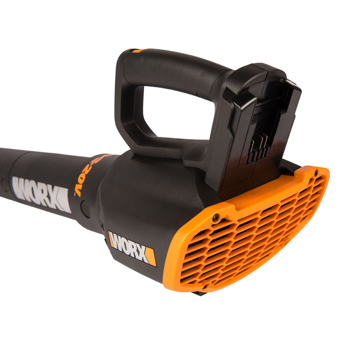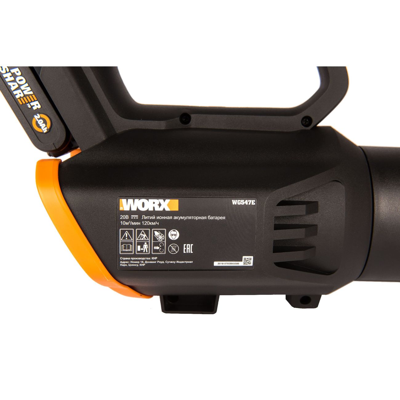 Воздуходувка Worx WG547E с технологией Air Turbine работает в двух скоростных режимах. Максимальный показатель составляет 120 км/ч. Производительность достигает 10 кубометров в минуту. Вес 2 кг и эргономичная рукоять позволяют пользоваться устройством одной рукой.