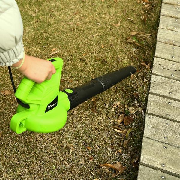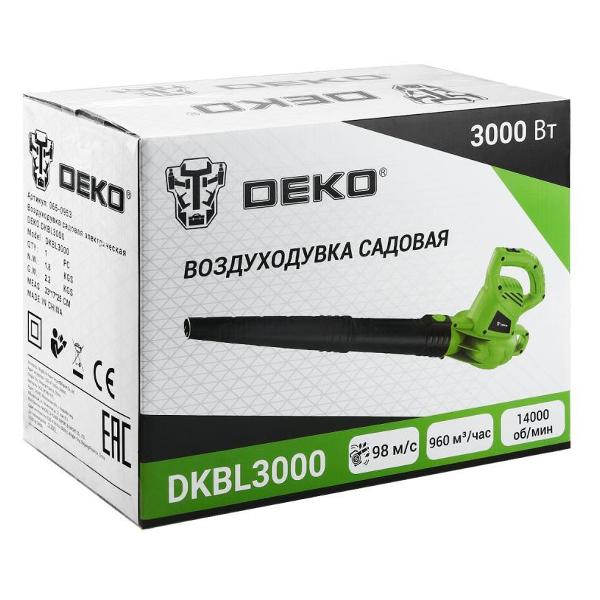 Воздуходувка Deko DKBL3000 оборудована двигателем мощностью 3000 Вт, который совершает до 14000 об/мин. Прибор функционирует с низким уровнем шума (до 60 дБ) и вибрации. Производительность составляет 960 м³/ч, скорость воздушного потока достигает 350 км/ч.