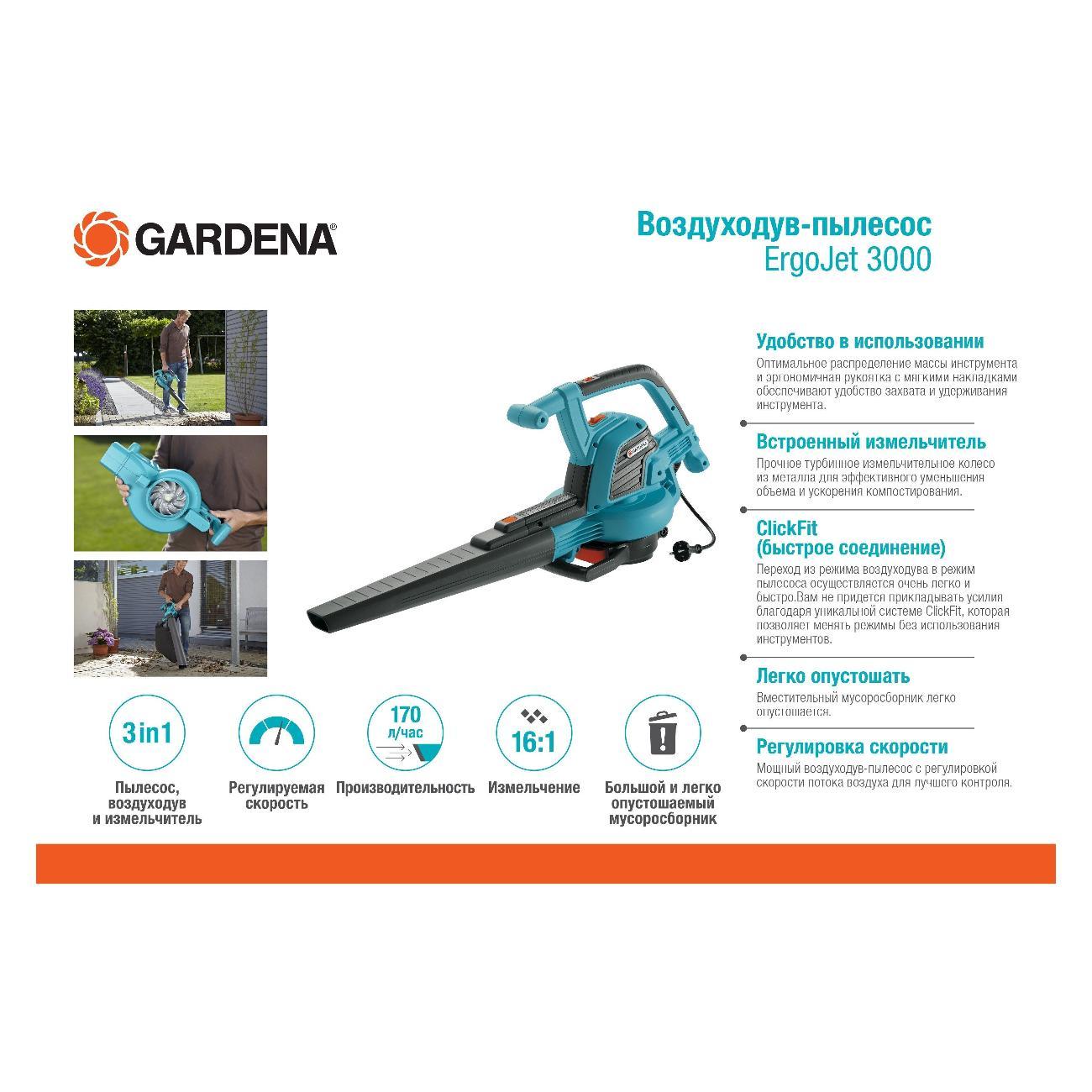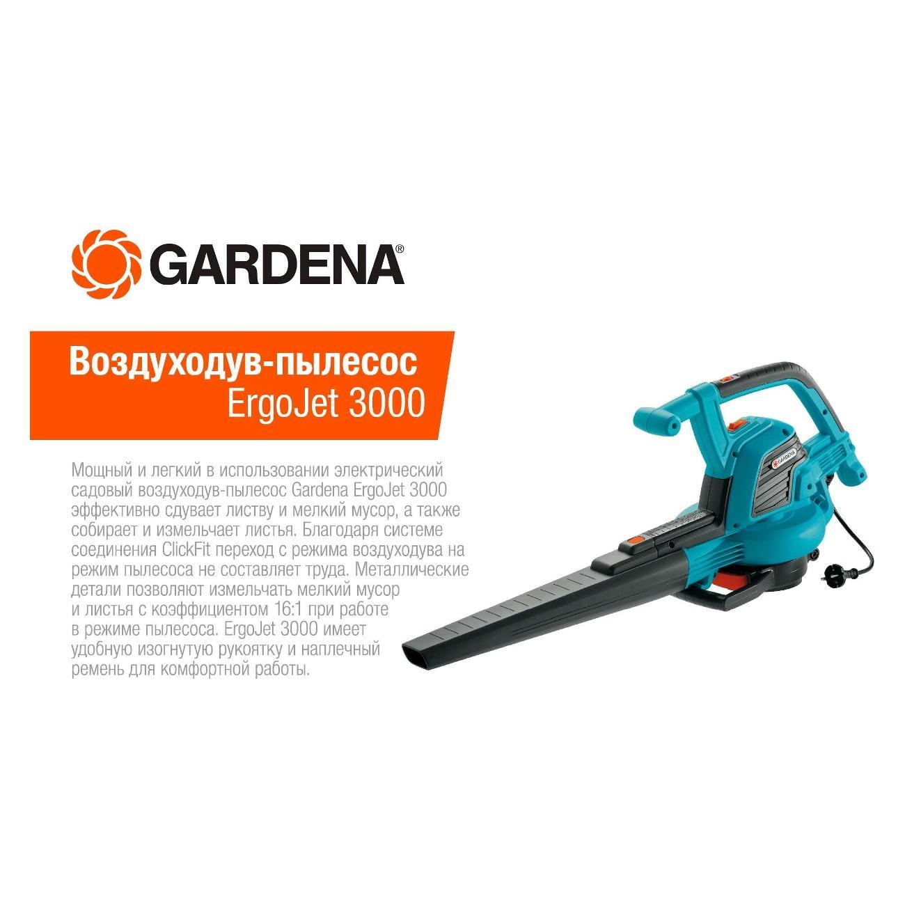 Вы можете купить Воздуходувка Gardena ErgoJet 3000 в магазинах М.Видео по доступной цене. Воздуходувка Gardena ErgoJet 3000: подробное описание, фото и отзывы реальных покупателей, характеристики, возможность скачать инструкции и подобрать аксессуары.