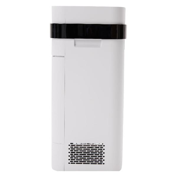 Система фильтрации надежно удерживает мелкие частицы пыли, шерсти питомцев, пыльцы. Пиковая мощность составляет 55 Вт. Воздухоочиститель получает питание от сети 100-240В. Длина кабеля равна 2 м. Вес модели 12 кг при размерах 50х25х25 см.