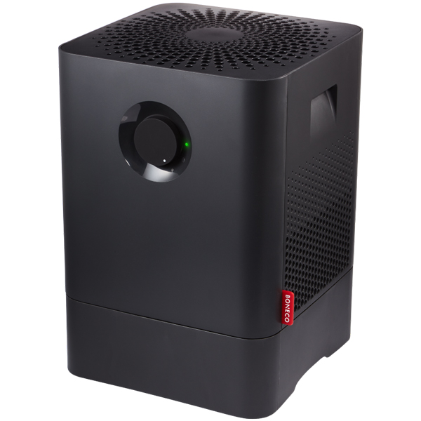 Воздухоочиститель Boneco W 200A — компактное устройство с пластиковым корпусом черного цвета и габаритными размерами 41,2х28х28 см. Он предназначен одновременно для увлажнения и очищения воздуха. Прибор подходит для помещений площадью до 50 кв. м. Работа осуществляется при уровне шума до 37 дБ.