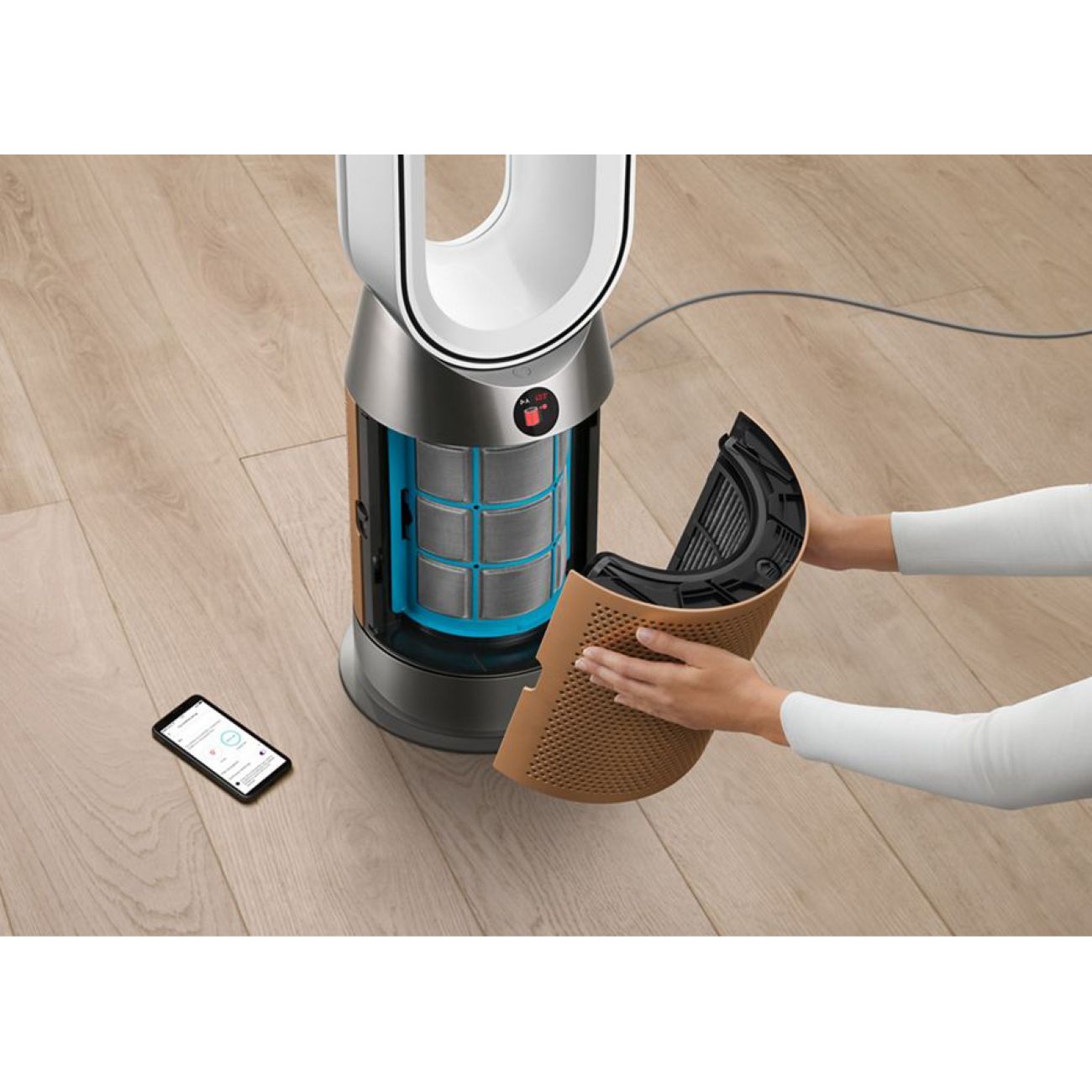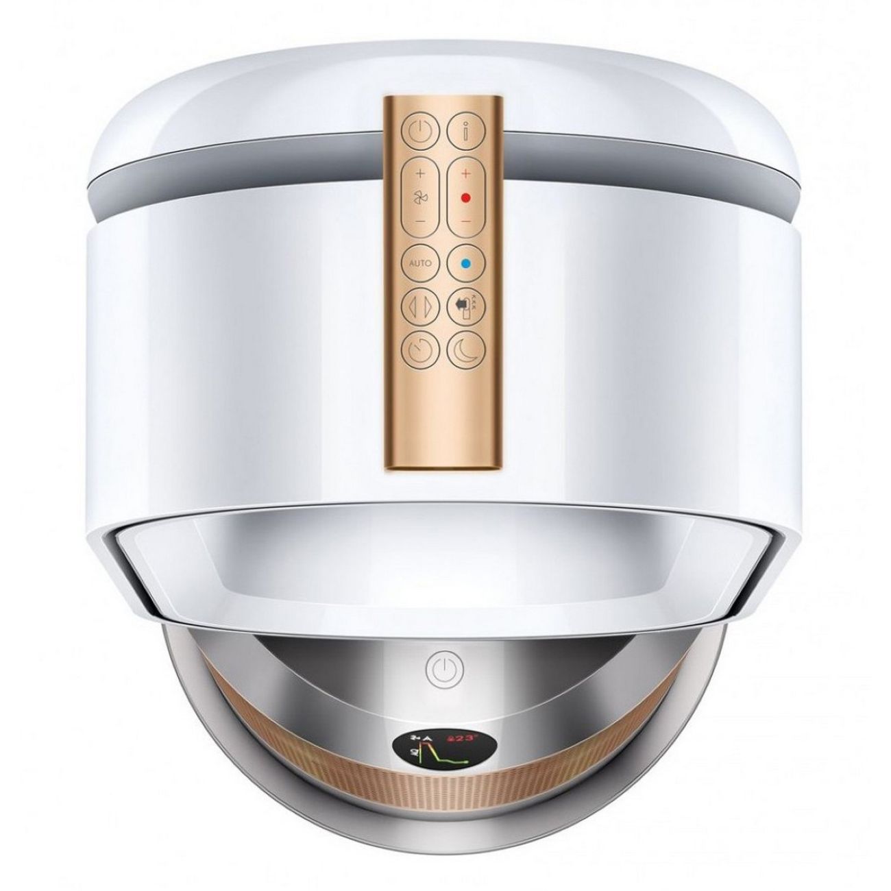 Воздухоочиститель Dyson Hot+Cool Formaldehyde HP09 White/Gold — многофункциональное устройство, которое очищает, нагревает или охлаждает воздух в помещении. Благодаря улучшенной фильтрационной системе прибор удаляет из воздуха бактерии, вирусы и пыль, нейтрализует запахи табачного дыма.