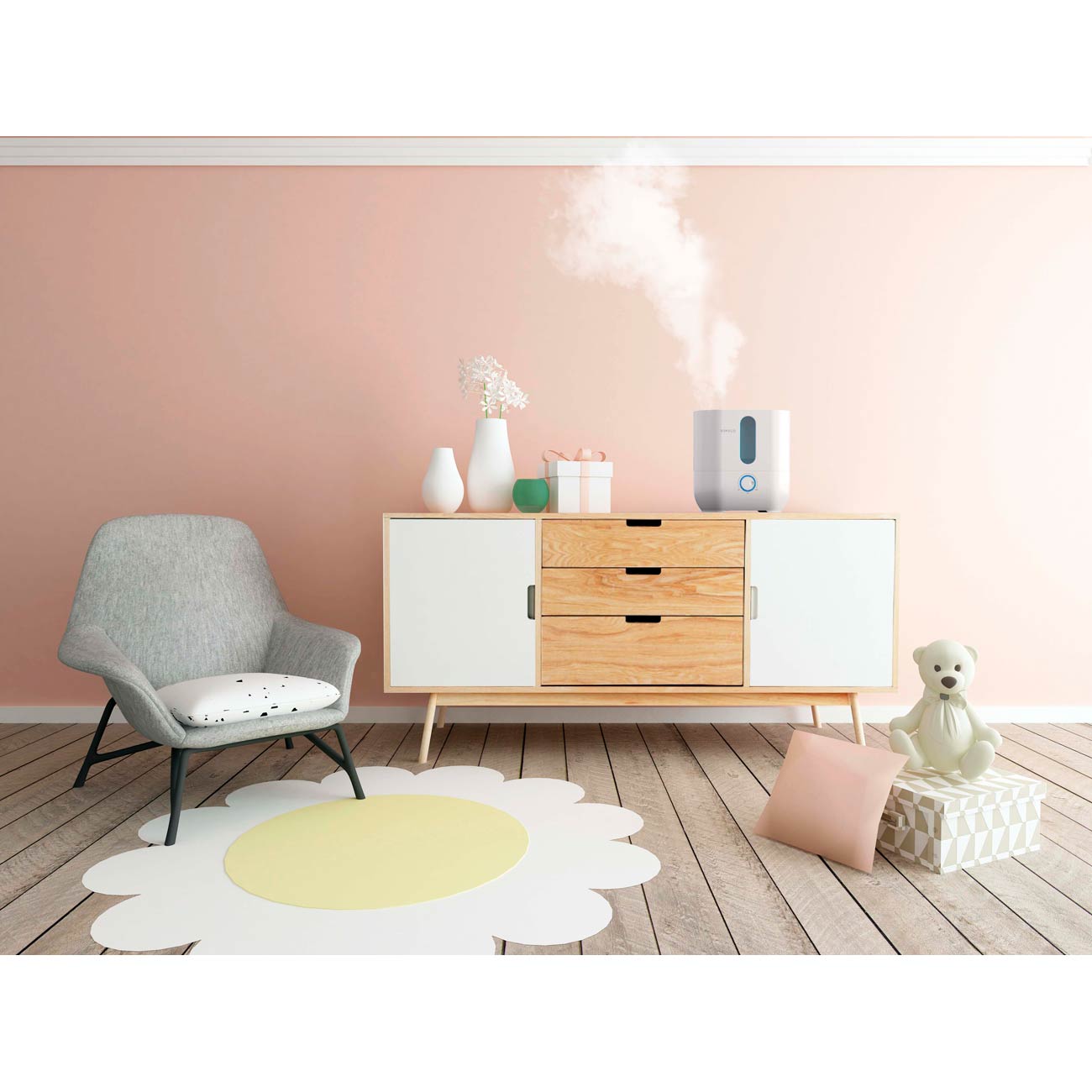 Пар можно увидеть и это помогает «увидеть» увлажнение. Удобный отсек для заливания воды - широкое отверстие, сложно пролить воду. Встроенный гигрометр есть (правда, показания его посмотреть невозможно).