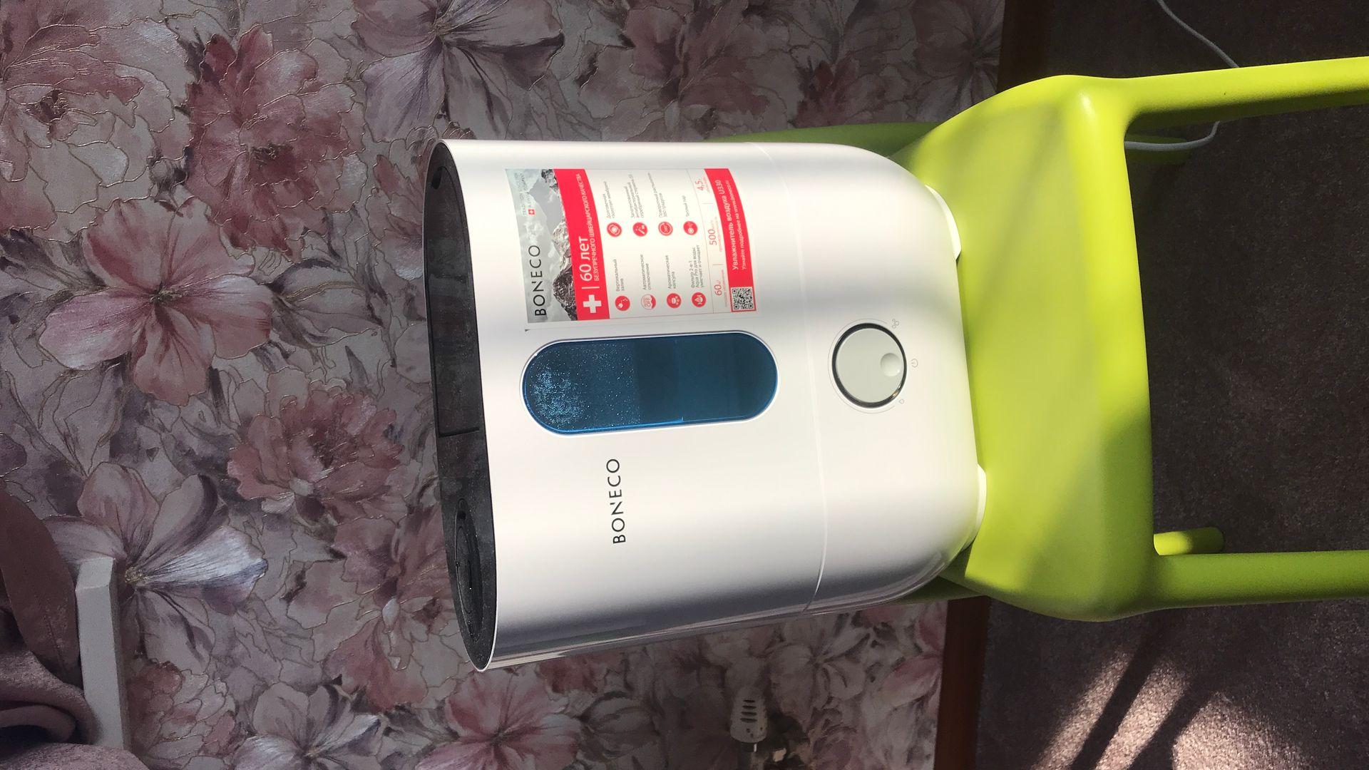 Работает на максимуме уже 9 суток. Уверенно вышел на заданные параметры (свыше 60% влажности) только сегодня. Работает в комнате 15 кв.м. и обеспечивает необходимую влажность только при закрытой двери, хотя заявлено, что рассчитан на 60 кв.м. И это притом, что мы не проветриваем помещение и у нас в дальней точке квартиры стоит ещё один увлажнитель воздуха, а квартира как раз 60 кв.м. Заданная влажность достигается только при температуре 21 градус. Если хоть на пару градусов выше - влажность падает. Воду надо доливать 2 раза за сутки, хотя резервуар большой. Наполнять резервуар приходится ковшиками, чтобы не таскать увлажнитель с 5 литрами воды - это не слишком удобно. Подсветка не отключается, что для спальни плохой вариант. Возле кровати ставить не рекомендую - довольно дискомфортно зимой, когда на тебя падает этот пар. Возможно, летом при жаре это как раз будет супер-комфортно, и минус превратится в плюс, не знаю.))) Недостатком считаю автоотключение, то есть ночью он щёлк! и выключился, через некоторое время щёлк! и включился. Управление механическое, сложно подобрать положение, при котором влажность будет поддерживаться равномерно. При влажности выше 62% запотевают окна.