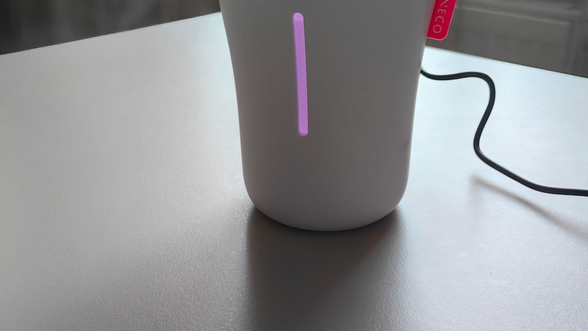 Очень стильный! Стакана хватает на 8 часов, как раз ставлю на ночь. Подсветка очень приятная, включаю с ней, нет ничего в ней новогоднего или китайско-яркого, очень и очень приятная. Освежитель работает хорошо, в комнате заметно стало легче дышать, стоит он у кровати с учетом вмонтированного в пол радиатора на всю длину стены у окна, то прекрасный показатель. Очень довольна покупкой. В управлении очень удобен, всего одна кнопочка. Она же и выключает подсветку. Очень интересный внутри дна кейс для провода, не торчит он и не валяется нигде. Своих денег стоит, считаю прекрасное сочетание цена-качество. Отличное исполнение, товар не выглядит дешево, хороший подарок, как раз куплю подружкам на 8 Марта и в детскую комнату крестнице, отлично подойдет.