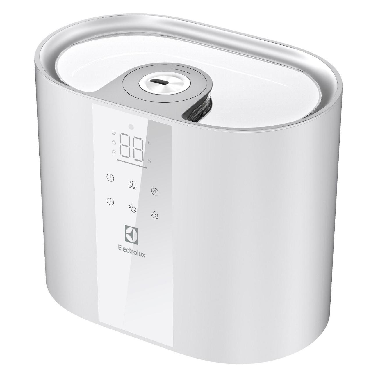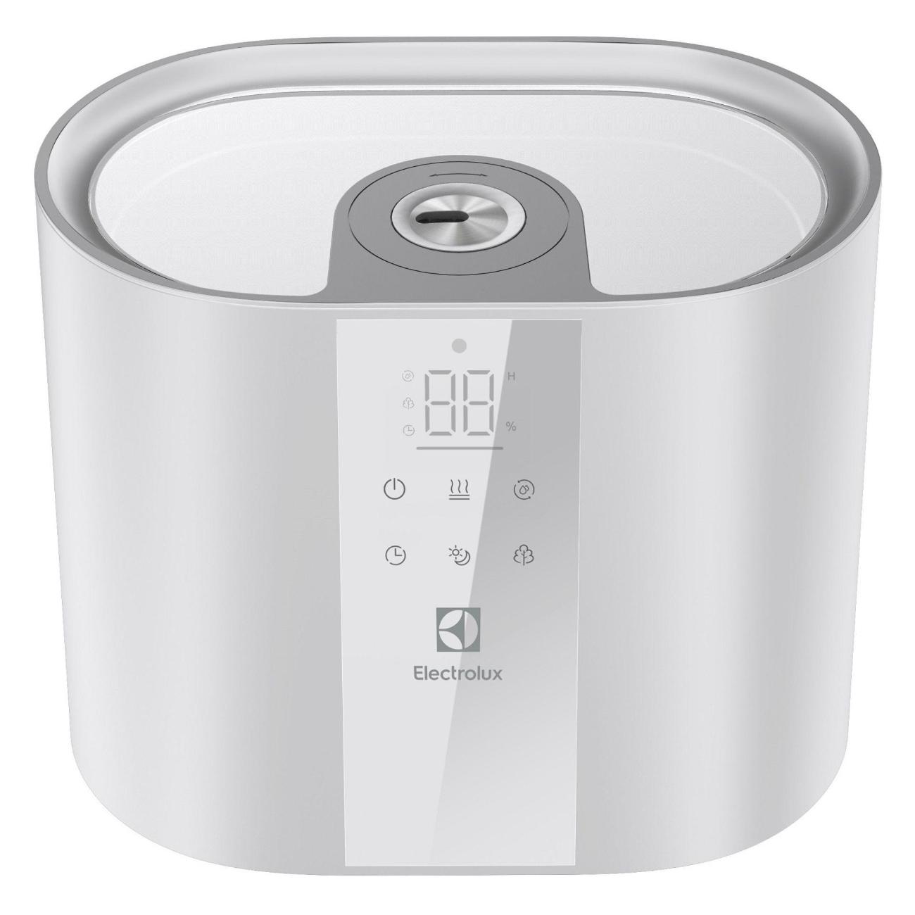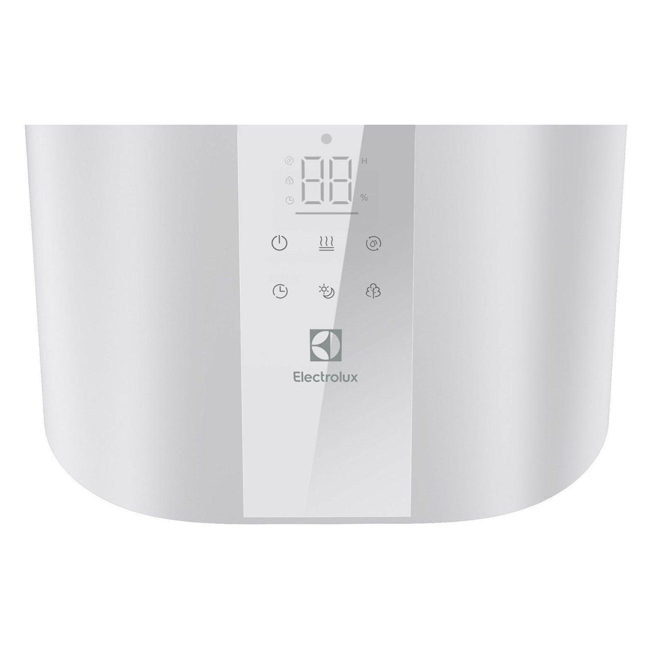 Воздухоувлажнитель Electrolux EHU-6115D управляется сенсорно при помощи панели со встроенным таймером, звуковым сигналом, индикацией уровня воды, ее отсутствия, выбранного режима, мощности и влажности. Пластиковый корпус белого цвета дополнен подсветкой, прорезиненными ножками, гигрометром, антибактериальным покрытием, фильтром очистки воды, вентилятором и 5,5-литровым съемным резервуаром.
