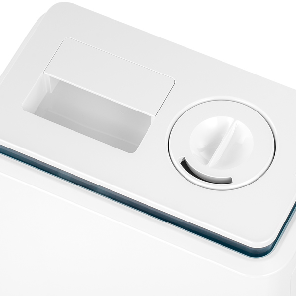 Максимальная производительность устройства – 400 мл/час, однако интенсивность испарения можно регулировать, доступно три уровня. Встроенный гигрометр позволяет прибору определять и автоматически поддерживать заданный вами уровень влажности в диапазоне от 40 до 60 процентов. Предусмотрены также режимы «Детская комната» и «Ночной». Ионизатор сделает воздух свежим и снизит количество содержащихся в нём пылинок.