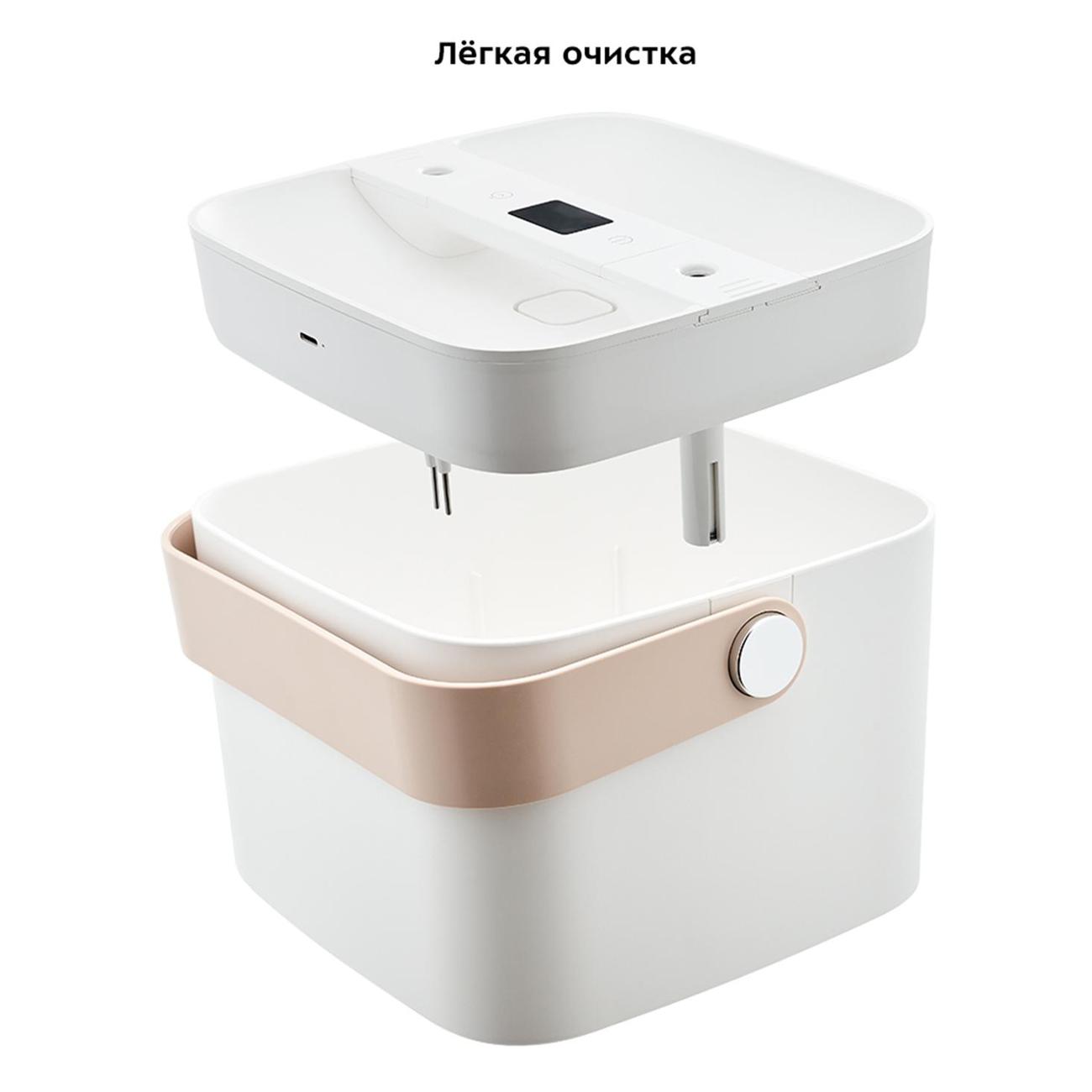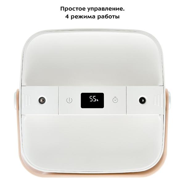 В резервуар объемом 2,5 л удобно добавлять воду через специальное отверстие, не снимая корпус. Управление осуществляется кнопками «Вкл./Выкл.» и «Таймер». Доступно четыре режима работы. Индикация включения отображается на панели. Вес изделия равен 0,8 кг.