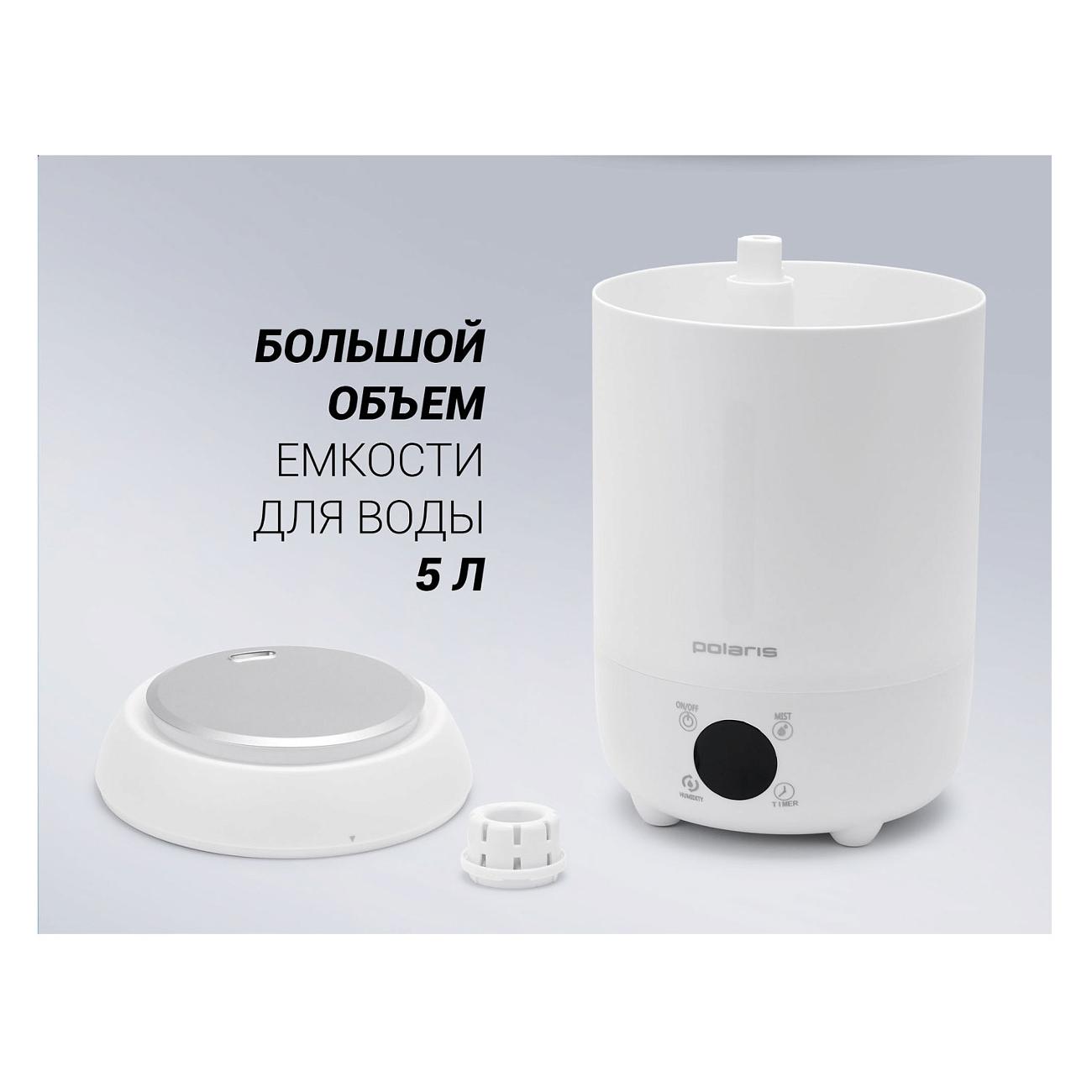 Воздухоувлажнитель Polaris PUH 3050 TF белого цвета обладает массой 1,2 кг. Потребляемая мощность не превышает 25 Вт. Устройство предназначено для настольной установки. Корпус и бак выполнены из пластика. Присутствует встроенный гигрометр. Прибор обладает возможностью регулировки уровня влажности воздуха.