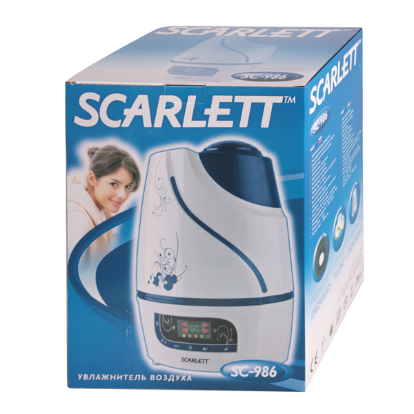 Воздухоувлажнитель Scarlett SC-986 – компактный, но мощный ультразвуковой аппарат с электронным типом управления, эксплуатация которого позволит поддерживать комфортный уровень влажности в помещении со стандартной высотой потолка и площадью, не превышающей значение в 50 кв. метров.