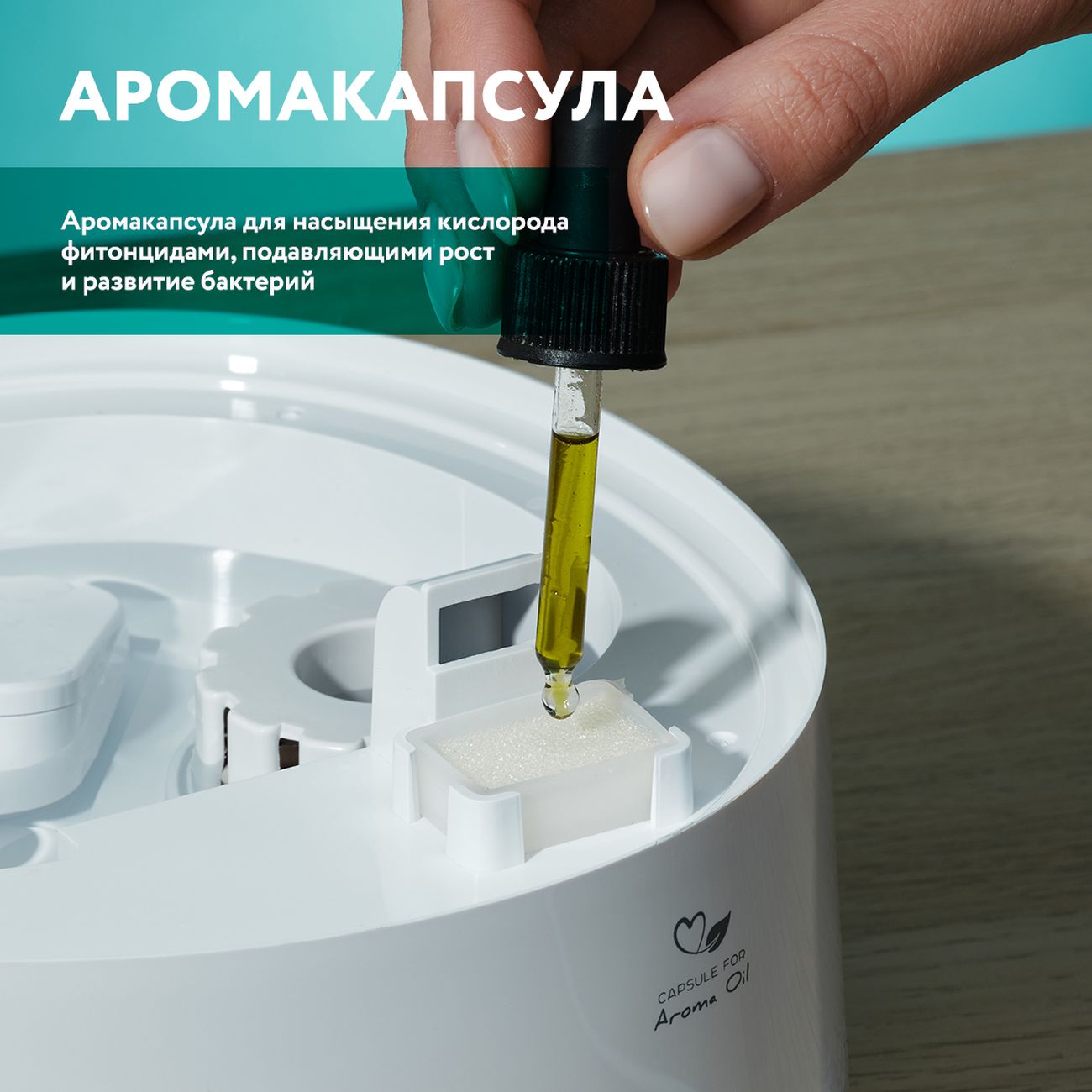 Приобрела на работу. Отопление так сильно включают зимой, что дышать нечем и воздух сильно сушит. Современный дизайн аккуратной формы. Дополняет рабочий интерьер. Резервуар с водой объемный, хватает на целый день, даже остается еще, доливает только утром. Никаких мокрых пятен не оставляет. Управление сенсорное, но я установила приложение на телефон, с него и управляю. Так что мы подходим к увлажнителю только тогда, когда нужно добавить воды.