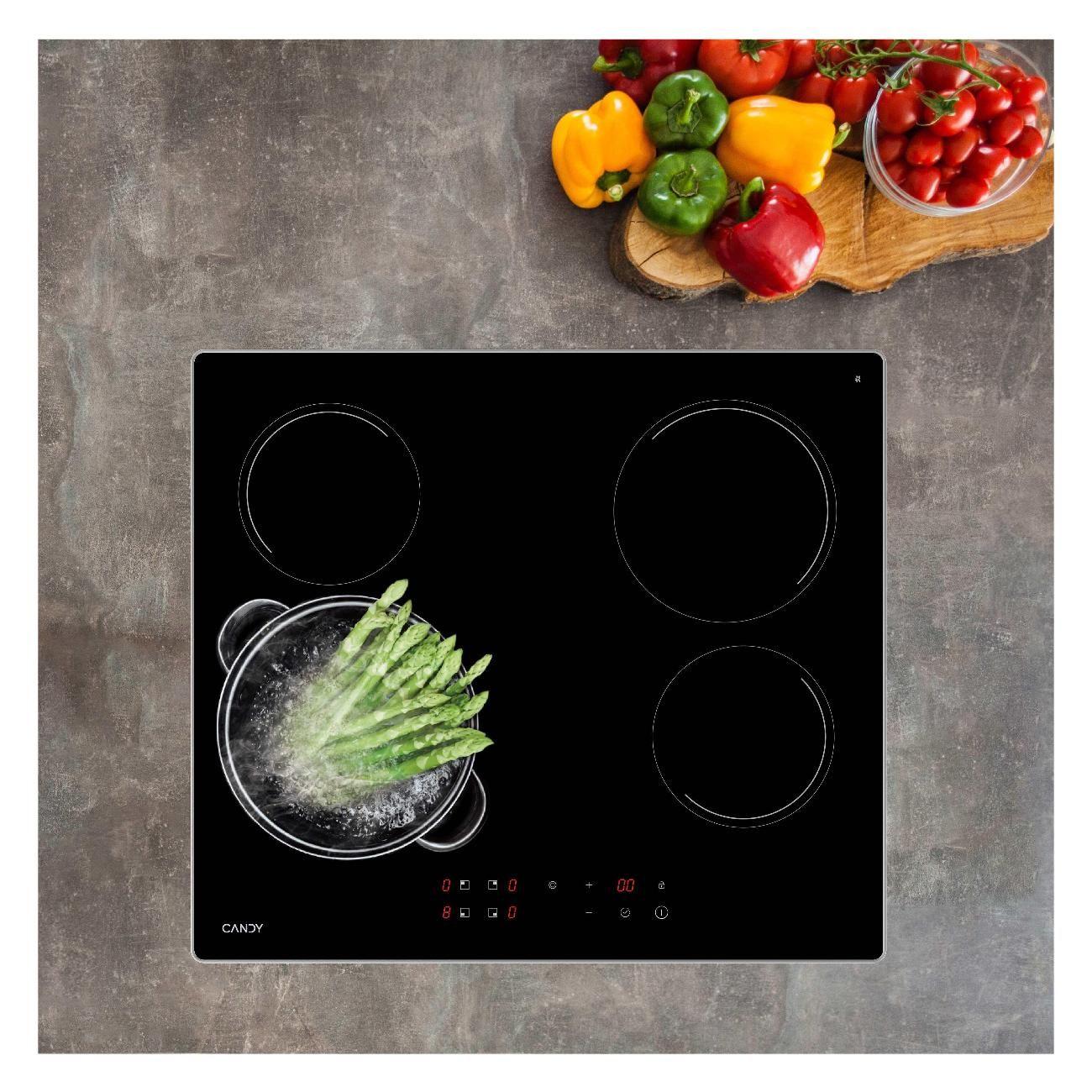 Электрическая панель Candy CHXC64DAB — независимая встраиваемая модель черного цвета со стеклокерамической поверхностью и алюминиевой рамкой, устойчивыми к механическим воздействиям и простыми в уходе.