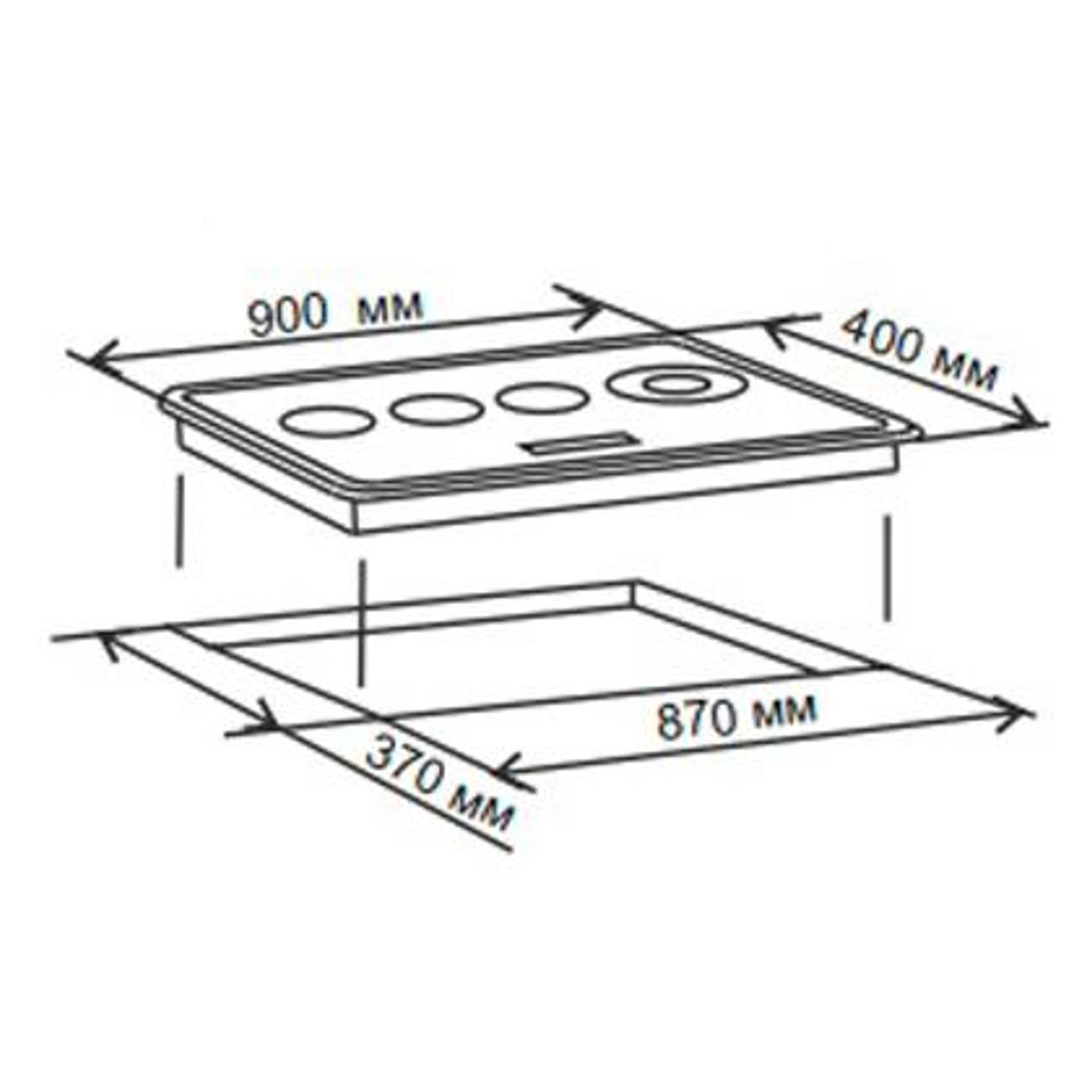 Встраиваемая электрическая панель De Luxe 904004.00эв независимого типа обладает габаритами 90х40 см и предназначена для встраивания в нишу размером 87х37 см с толщиной столешницы от 5 см. Вес составляет 9,5 кг. Потребляемая мощность достигает 5700 Вт.