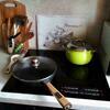 - Одна конфорока имеет увеличенный диаметр с поэтапным подключением контуров, другая для овальной посуды. Это позволяет нагревать пищу точно по контуру дна, в результате на приготовление тратится меньше времени.