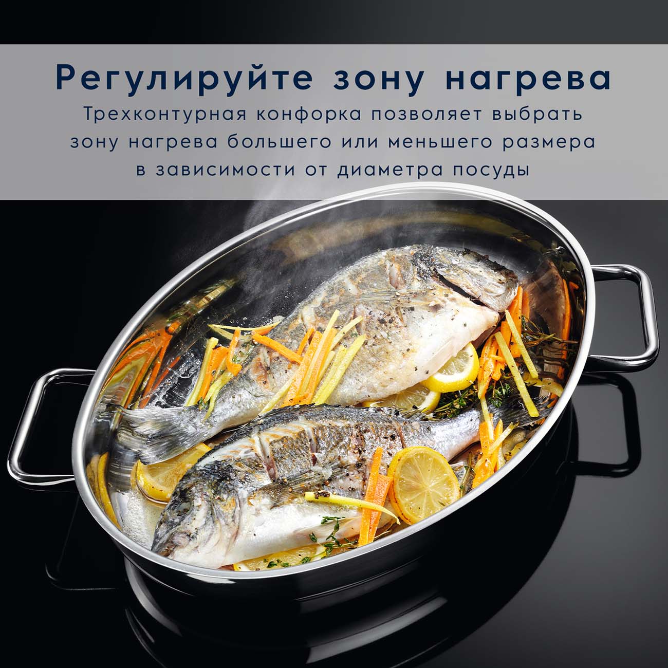 Встраиваемая варочная панель Electrolux EHF96547 оснащена конфорками типа Hi-Light, которые предоставят вам самые широкие возможности по использованию различной посуды. И маленькой турке, и «семейной» сковороде найдётся место благодаря тройному радиальному расширению, а утятница встанет на овальную зону нагрева.