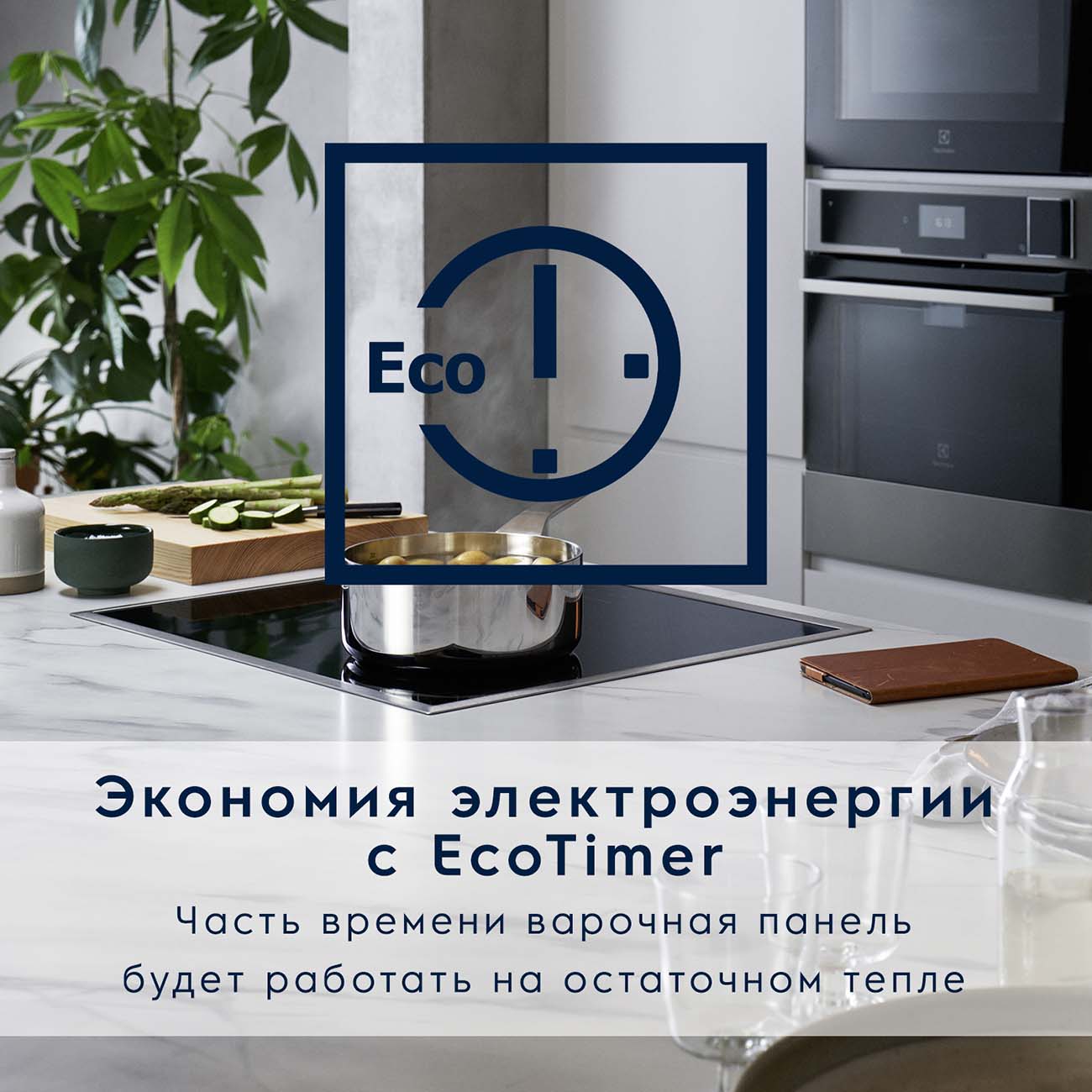 К вашим услугам два таймера. Первый – традиционный: задаёте время, после его истечения звучит сигнал, нагрев прекращается. Второй – Eco, панель отключается незадолго до окончания процесса, завершая готовку на остаточном тепле, что позволяет экономить электроэнергию.