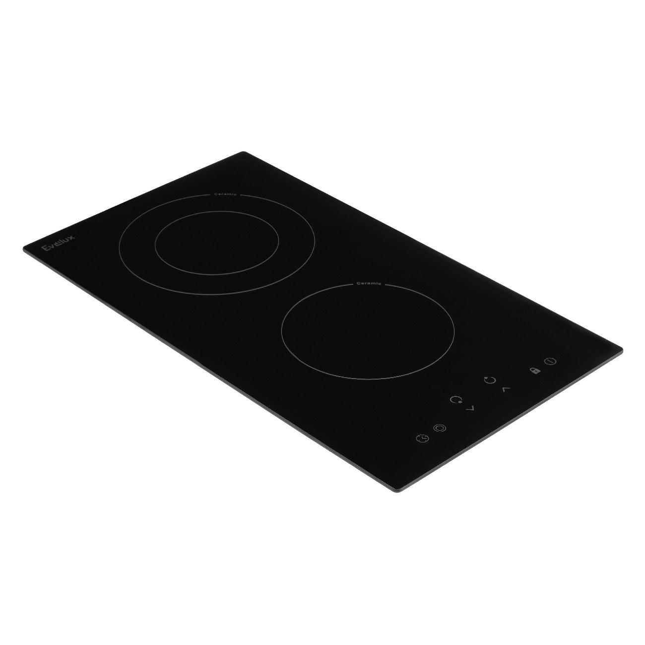 Встраиваемая электрическая плита Evelux HEV 321 B — независимая варочная панель черного цвета для монтажа в кухонную столешницу толщиной от 30 мм. Устройство выполнено из стеклокерамики, обладает обработанными краями без рамки. Установка требует подготовки ниши размером 270х490 мм.