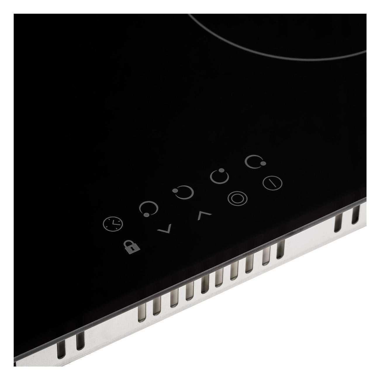 Сенсорная панель с индикацией включения и выбранной мощности обеспечивает точный контроль процесса приготовления. Наличие таймера позволяет задавать время работы конфорок с автоматическим отключением.