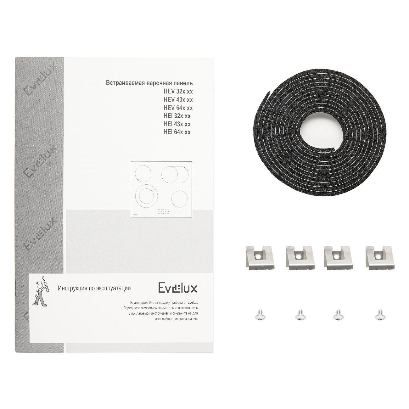 Встраиваемая электрическая плита Evelux HEV 641 B — безрамочная панель с обработанными краями интегрируется в столешницу толщиной от 30 мм. Поверхность выполнена из стеклокерамики черного цвета, устойчивой к механическим повреждениям. Габариты прибора — 590x520 мм, размеры требуемой ниши для монтажа — 560x490 мм.