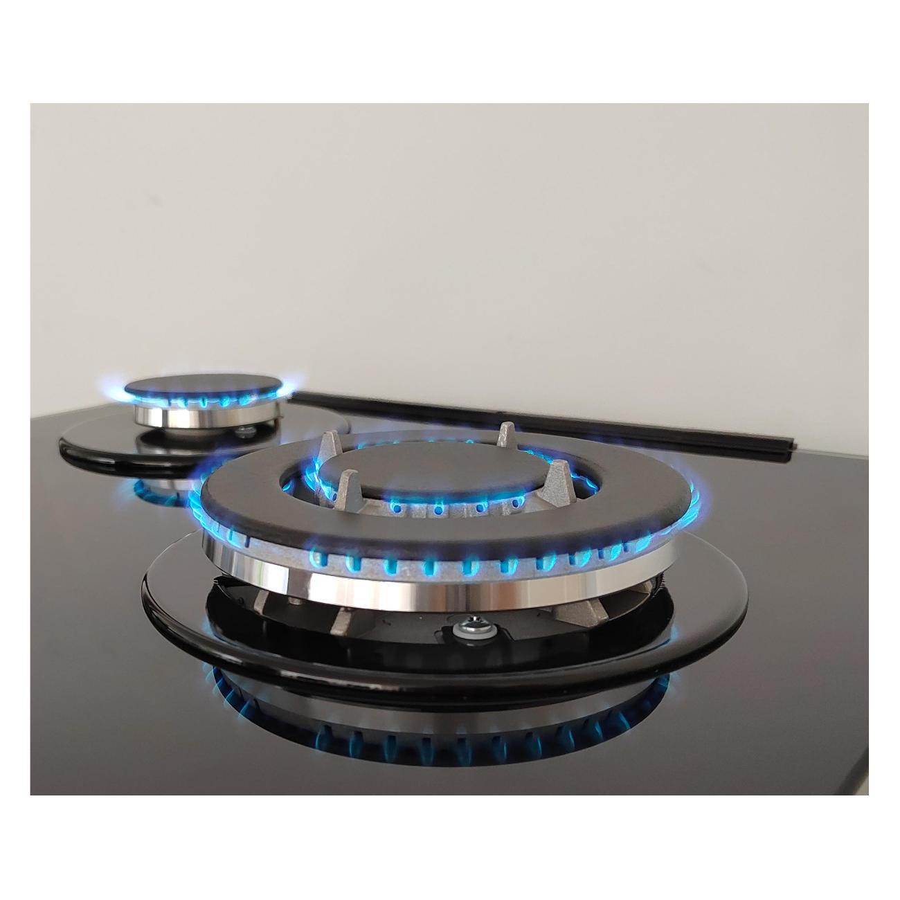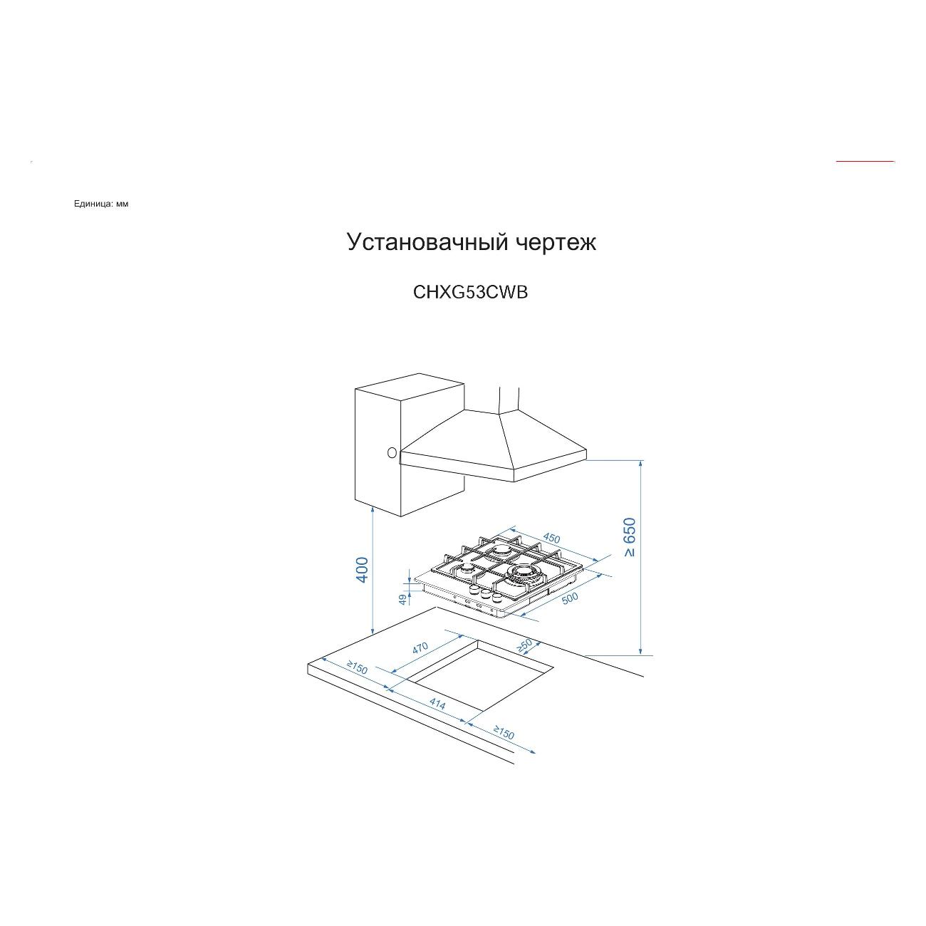 Встраиваемая газовая панель Candy CHXG53CWB — независимая модель черного цвета, для монтажа которой требуется ниша размером 41,4х47 см при толщине столешницы от 4 см.