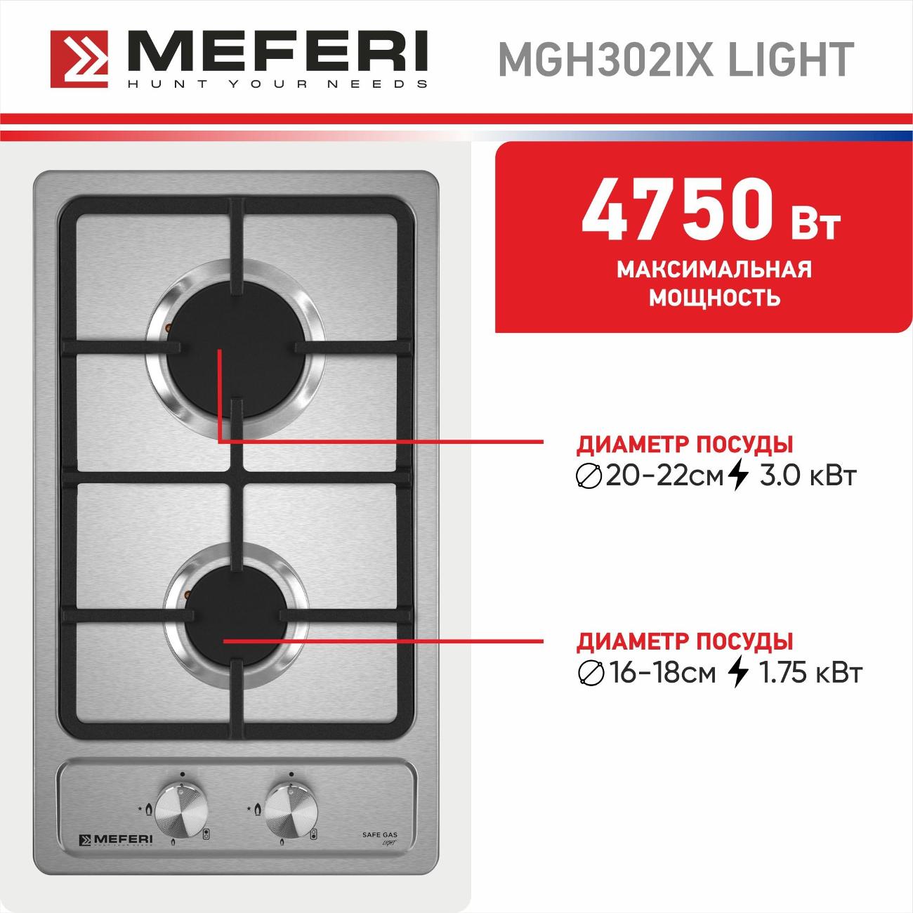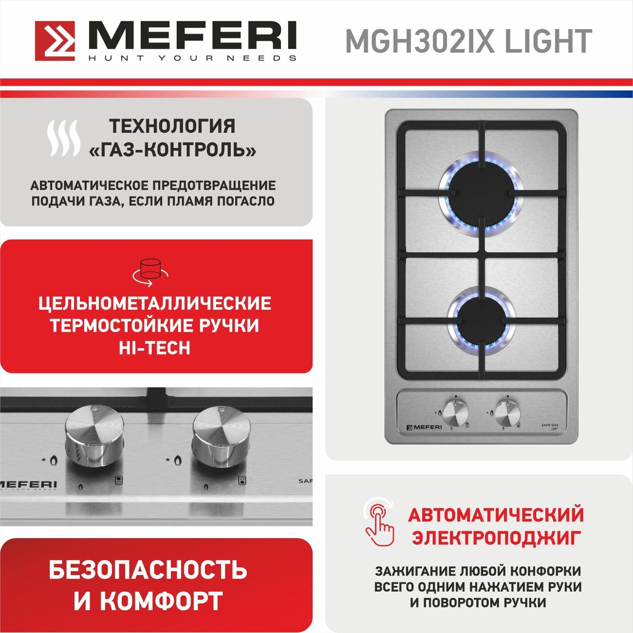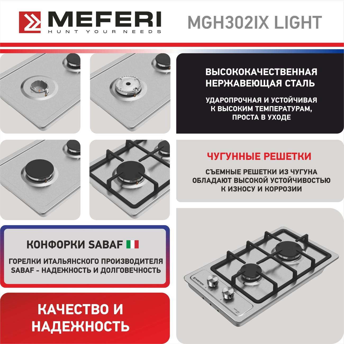 Вы можете купить Встраиваемая газовая панель независимая MEFERI MGH302IX LIGHT в магазинах М.Видео по доступной цене. Встраиваемая газовая панель независимая MEFERI MGH302IX LIGHT: подробное описание, фото и отзывы реальных покупателей, характеристики, возможность скачать инструкции и подобрать аксессуары.