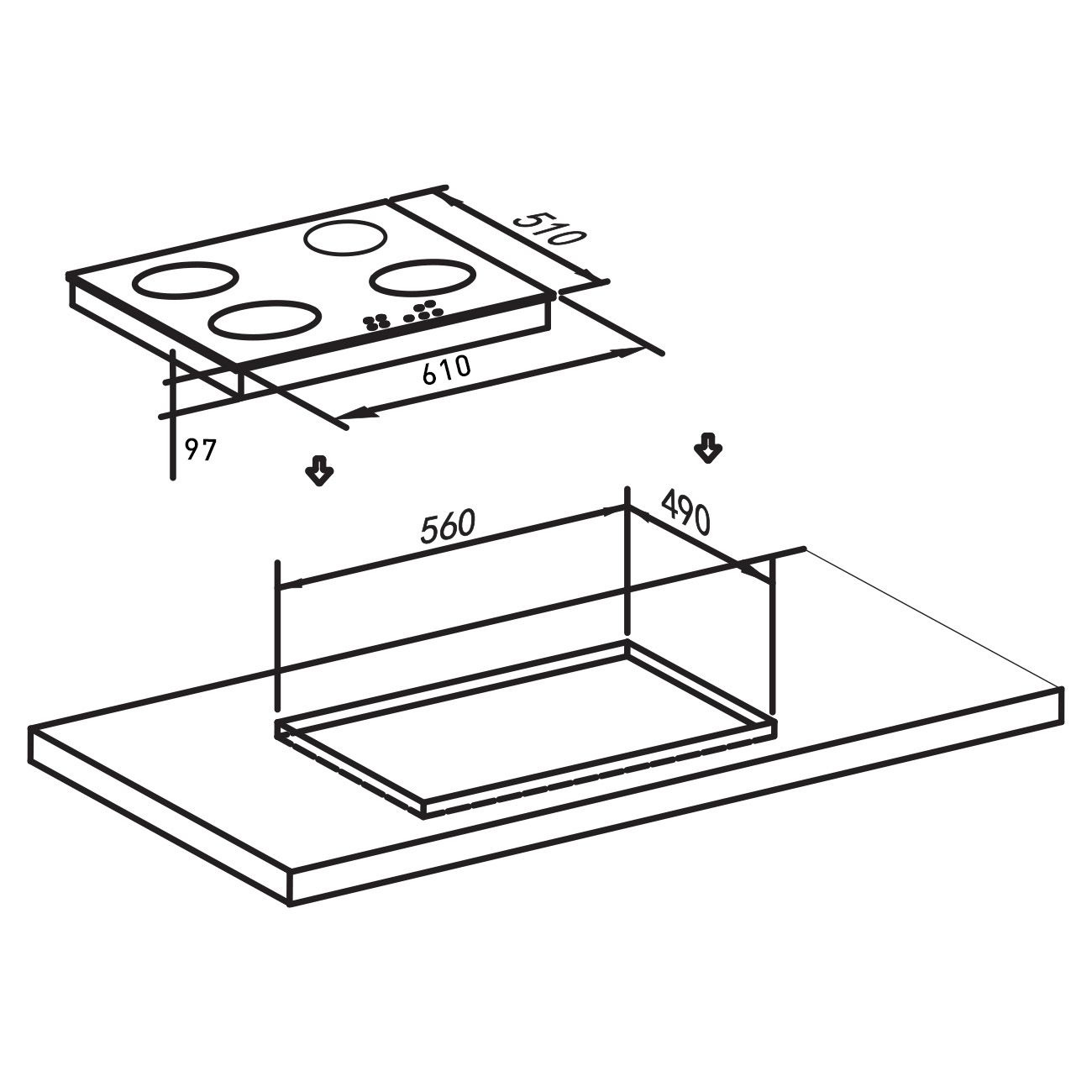 Ширина и глубина составляют 61х51 см при весе 14,3 кг. Модель получила жиклеры и штуцер для газового баллона, а также газконтроль каждой конфорки.