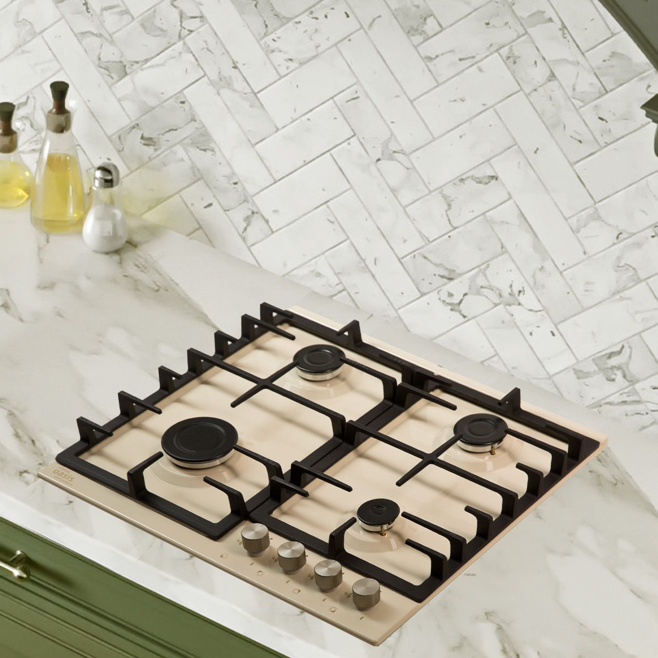 Независимая встраиваемая газовая панель«making Oasis everywhere» P-MIRP оснащена металлической варочной поверхностью и решёткой из чугуна. Механическая панель управления размещена на корпусе спереди. Размер ниши для установки составляет 560х490 мм. Размеры модели — 580х515х89,5 мм. Устройство оснащено четырьмя конфорками мощностью 2,9 кВт, 1,7 кВт, 1,7 кВт, 0,9 кВт с автоподжигом и функцией газ-контроля. Дополнительно прилагаются жиклеры и штуцеры для подключения газового баллона. Цвет изделия — бежевый.