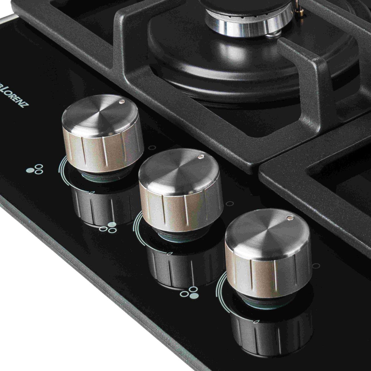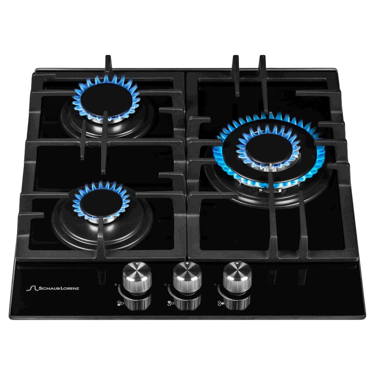 Газовая варочная поверхность Schaub Lorenz SLK GY4512 подходит для разных видов посуды. Благодаря оригинальному расположению трех конфорок, на поверхность можно установить тяжелый казан, гусятницу или другую посуду оригинальной формы. Чугунная решетка с дополнительными перегородками прочна и надежна, она не гнется под весом тяжелых кастрюль.