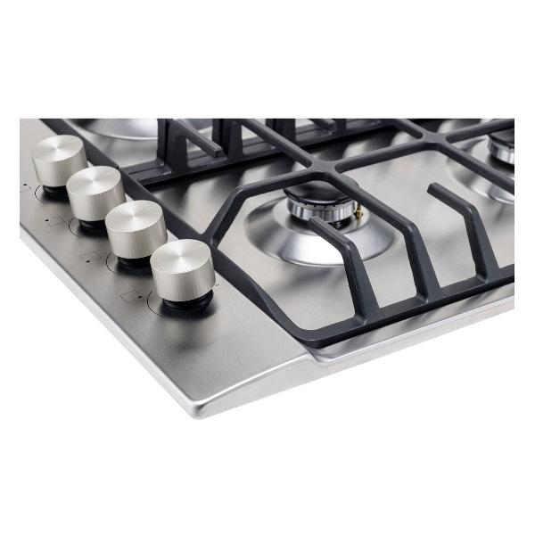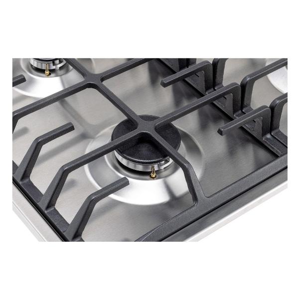 Независимая встраиваемая газовая панель Vard VHG6424X устанавливается в один уровень со столешницей в нишу размером 560х490х30 мм. Габаритные размеры устройства — 590х520 мм, вес — 10,1 кг. Конструкция модели включает в себя варочную панель из нержавеющей стали с закругленными краями и четырьмя конфорками мощностями 2,8 кВт, 1,7 кВт, 1,7 кВт, 0,97 кВт, чугунной решеткой.