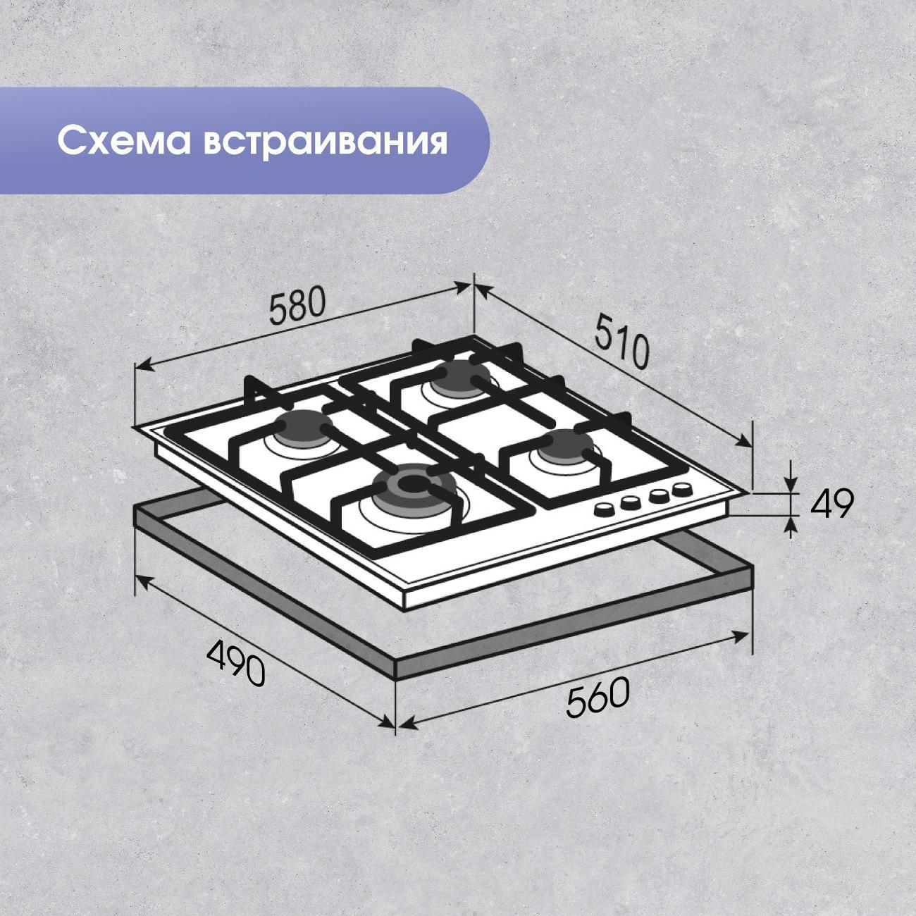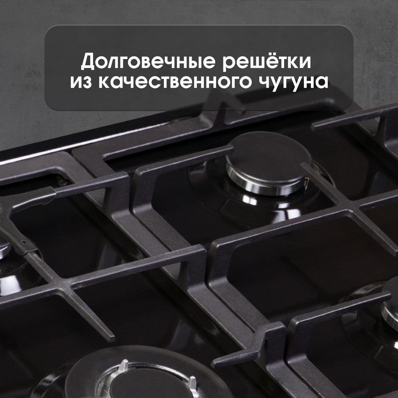 Отличная варочная поверхность. Жена хотела именно эмалевую поверхность, не стекло, поэтому выбрали эту. Надежное крепление к столешнице металлическим креплением (скобами). Есть уплотнитель, правда не очень понял куда его клеить, так как торцы не плоские. Очень порадовало, что уже стоит провод на розжиг с вилкой, не надо покупать отдельно. Чугунные решетки, которые очень увесистые.