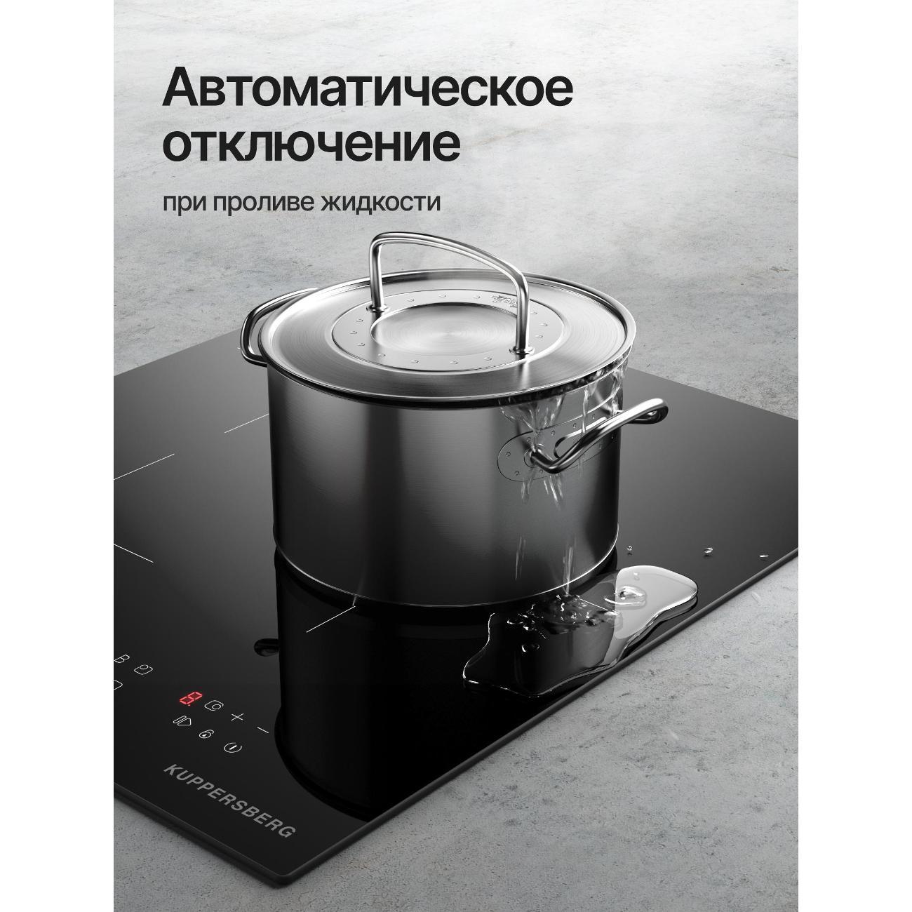 Независимая индукционная панель Kuppersberg ICI 406 отличается компактными габаритами: ширина 45 см позволяет встраивать ее в малогабаритные кухни или использовать как дополнительную зону для приготовления. Глубина модели составляет 48,8 см.