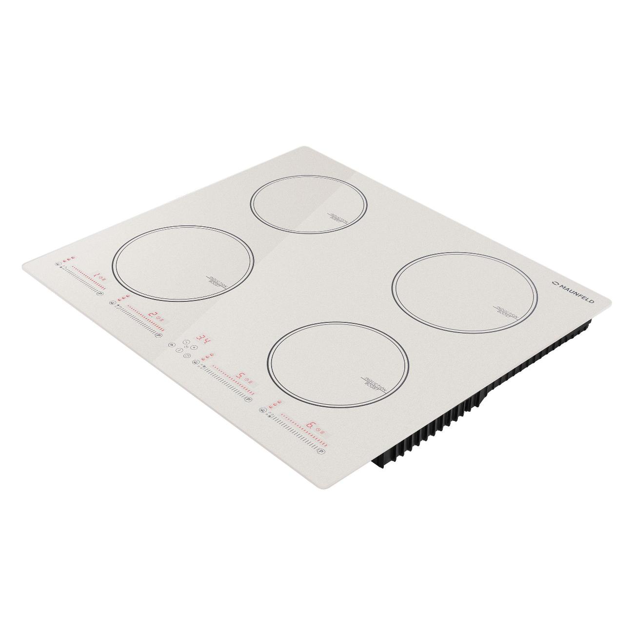 Встраиваемая индукционная панель Maunfeld CVI594SBG независимого типа автоматически определяет размер посуды для подогрева зоны соответствующего диаметра. Встроено две конфорки по 18 см и две по 16 см. Доступно девять уровней нагрева, которые регулируются сенсорными слайдерами. Показатель потребляемой мощности не превышает 7600 Вт.