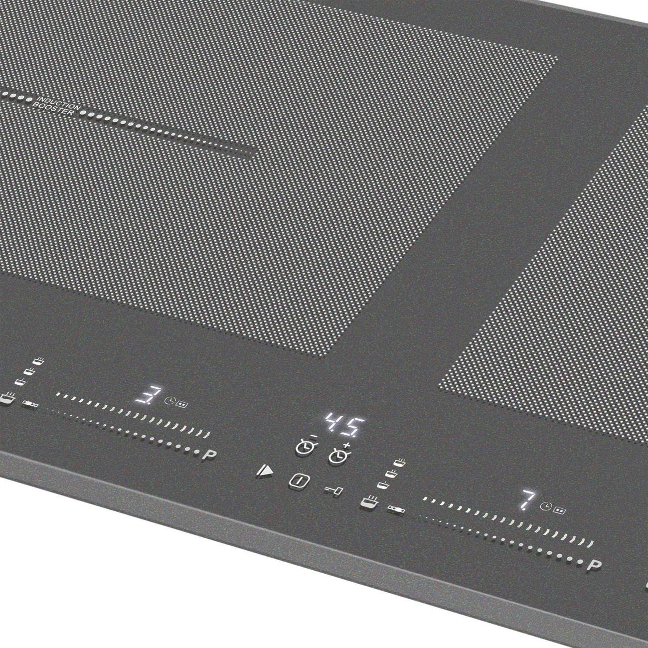 Для управления работой каждой варочной зоны предусмотрены четыре сенсорных слайдера, которые позволяют выбирать время (до 99 минут), мощность нагрева, активировать режим Stop&Go с возможностью ненадолго отлучиться и продолжить приготовление блюда с момента остановки. При продолжительном времени работы без изменения настроек или попадании выкипевших жидкостей на варочную поверхность срабатывает автоотключение. Блокировка сенсорной панели предупреждает случайное изменение настроек. Индикация остаточного тепла информирует, что поверхность варочной панели не остыла до безопасных температур.