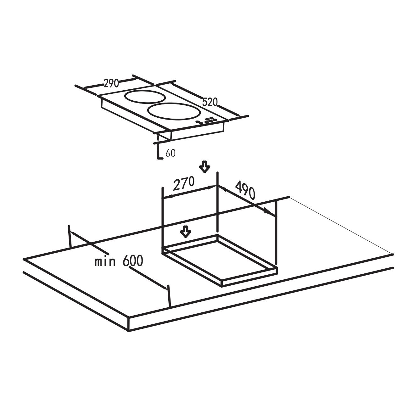Прибор оснащен системой самодиагностики неисправностей. Встроенный таймер позволяет устанавливать время приготовления, звуковой сигнал известит об окончании работы. Панель управления обладает блокировками от случайного включения. Вес прибора составляет 4,4 кг. Габариты — 29х52х6 см. Размеры ниши для встраивания — 27х49 см.