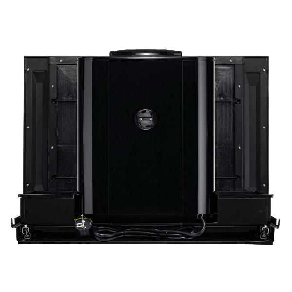 Модель оснащена индикацией отсутствия воды в резервуаре, этапа программы, текущего уровня жидкости. Максимальная потребляемая мощность — 1300 Вт. Корпус кофемашины выполнен из металла. Складная панель управления позволяет сохранить пространство на кухне.